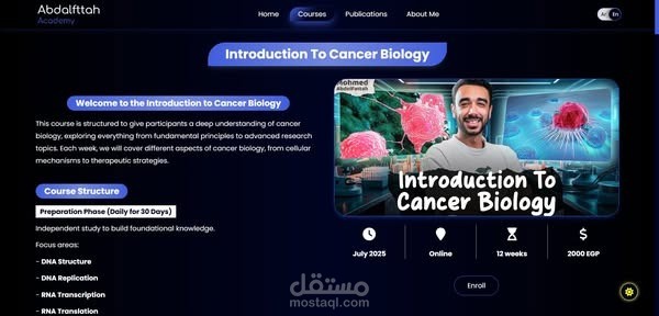 موقع تعليمي لحجز وبيع الدورات التعليمية الخاصة بالباحث في مرحلة الدكتوراه محمد عبد الفتاح، في مجال علم الأحياء والمعلوماتية الحيوية