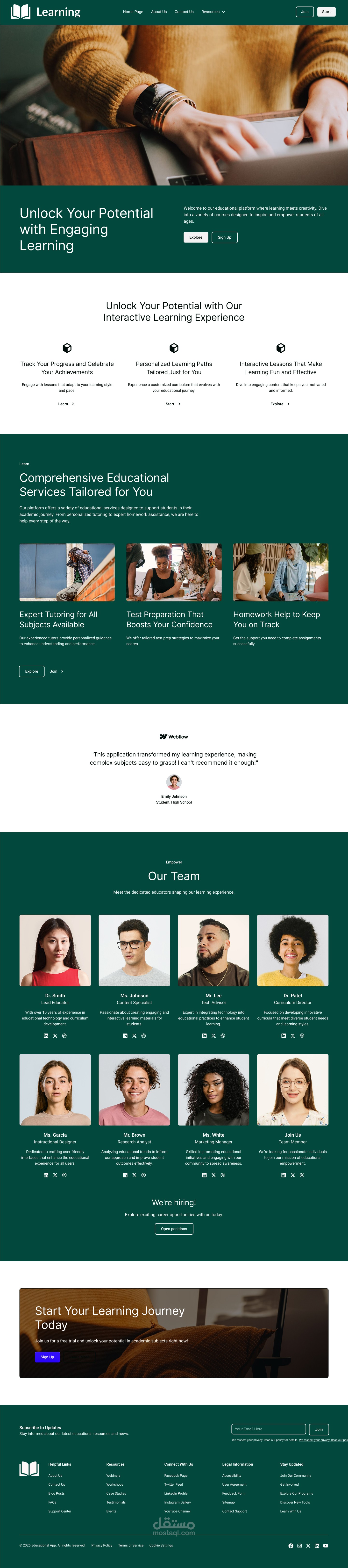Learning هو موقع تعليمي رقمي شامل يقدّم تجربة تفاعلية لتعلّم المهارات الأكاديمية والمهنية باللغة الإنجليزية، مصمم خصيصًا لدعم المتعلّمين عبر أدوات ذكية ومحتوى عالي الجودة، يجمع بين التعليم المرئي والتفاعل العملي.