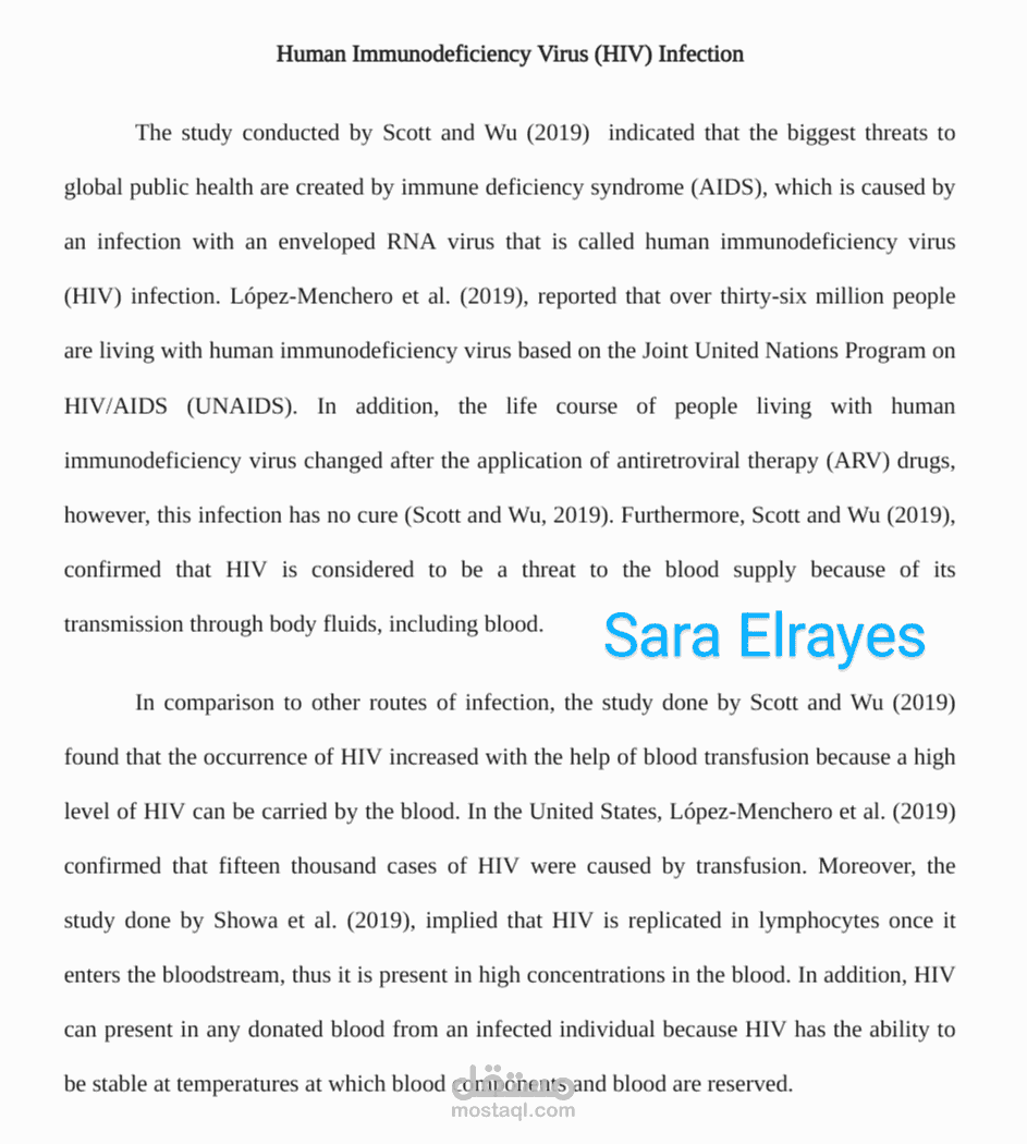 كتابة علمية طبية (medical writing) باللغة الإنجليزية عن واحد من الأمراض التي تنتقل بنقل الدم وهو الإيدز أو فيروس المناعة البشرية Human immunodeficiency virus (HIV).
