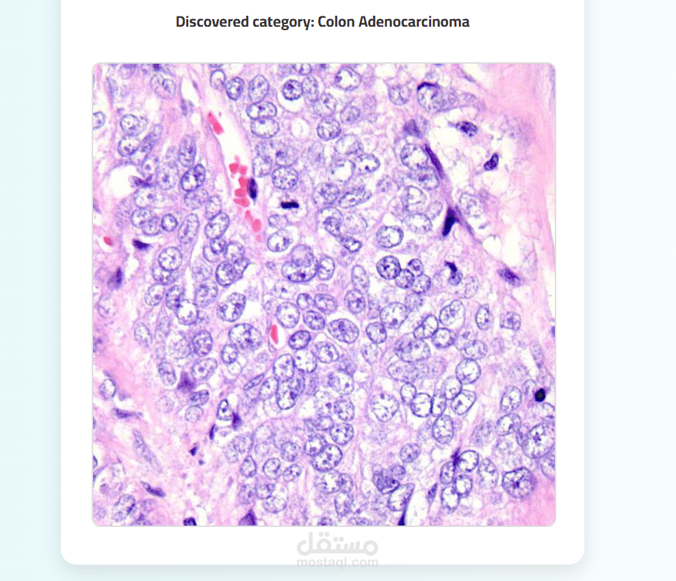 يهدف هذا المشروع إلى بناء نموذج ذكاء اصطناعي قادر على تصنيف الصور النسيجية (Histopathological Images) بدقة لتحديد ما إذا كانت تحتوي على خلايا سرطانية في الرئة أو القولون. تم استخدام تقنيات التعلم العميق (Deep Learning) وتحديدًا الشبكات العصبية التلافيفية (CNNs) لتدريب النموذج على مجموعة بيانات LC25000.