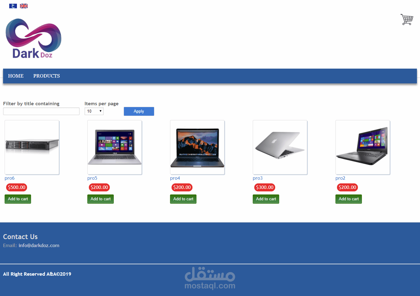 متجر الكتروني بشكل متجاوب وباللغتين العربية والانكليزية