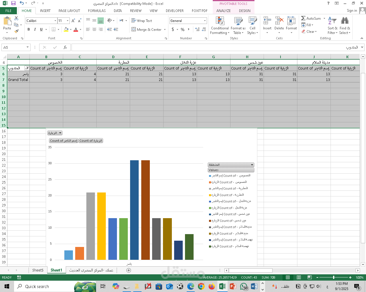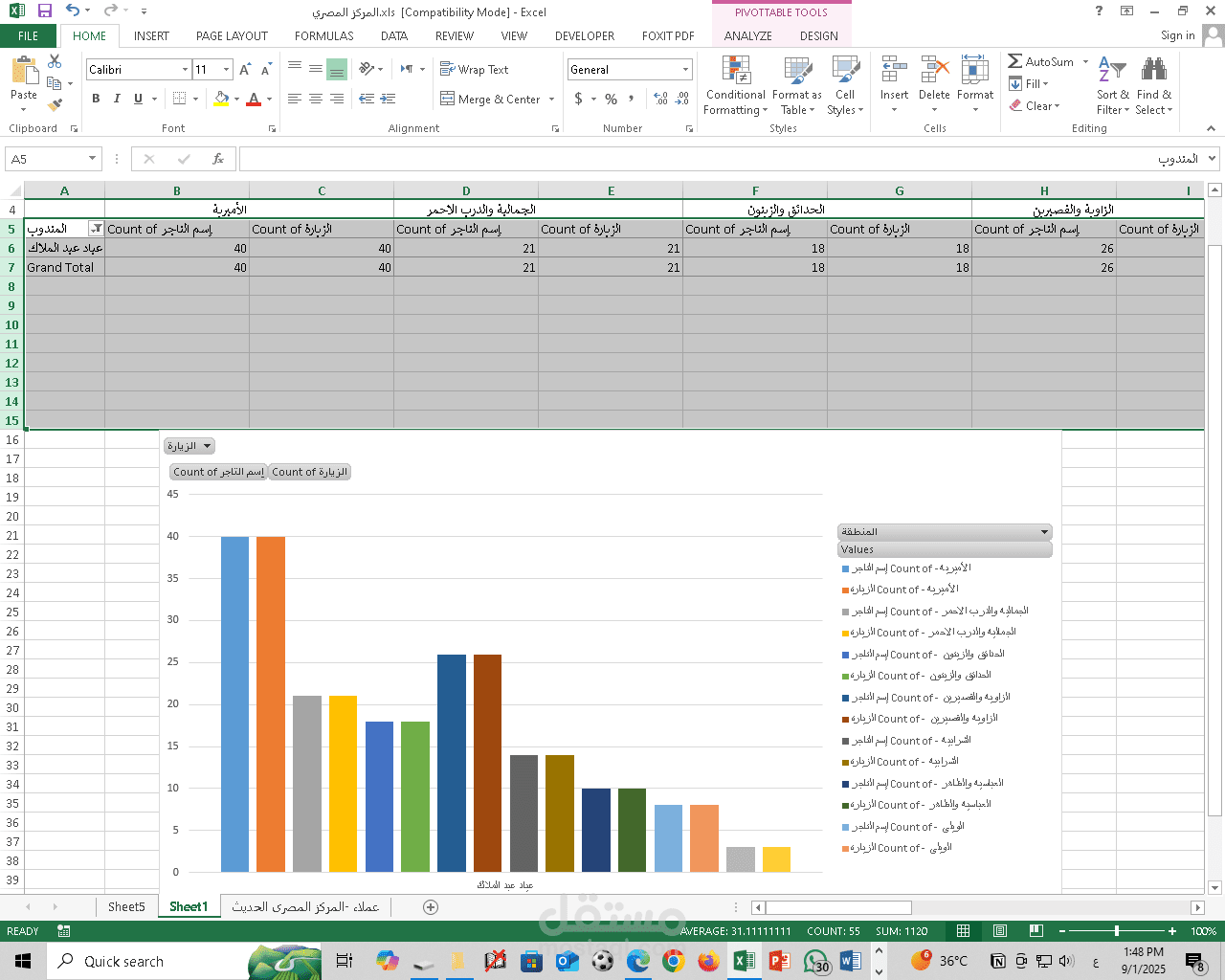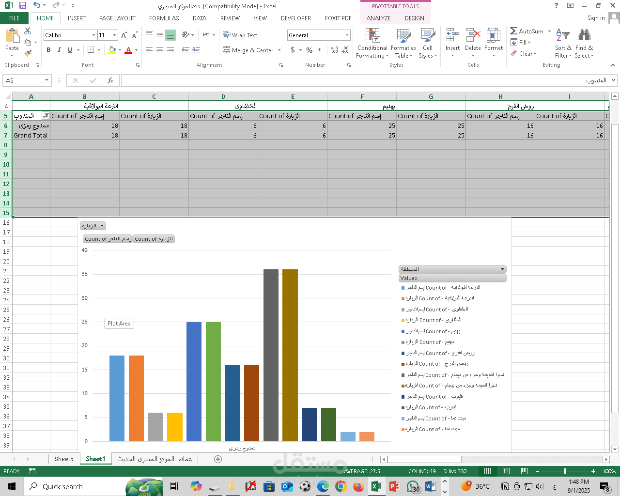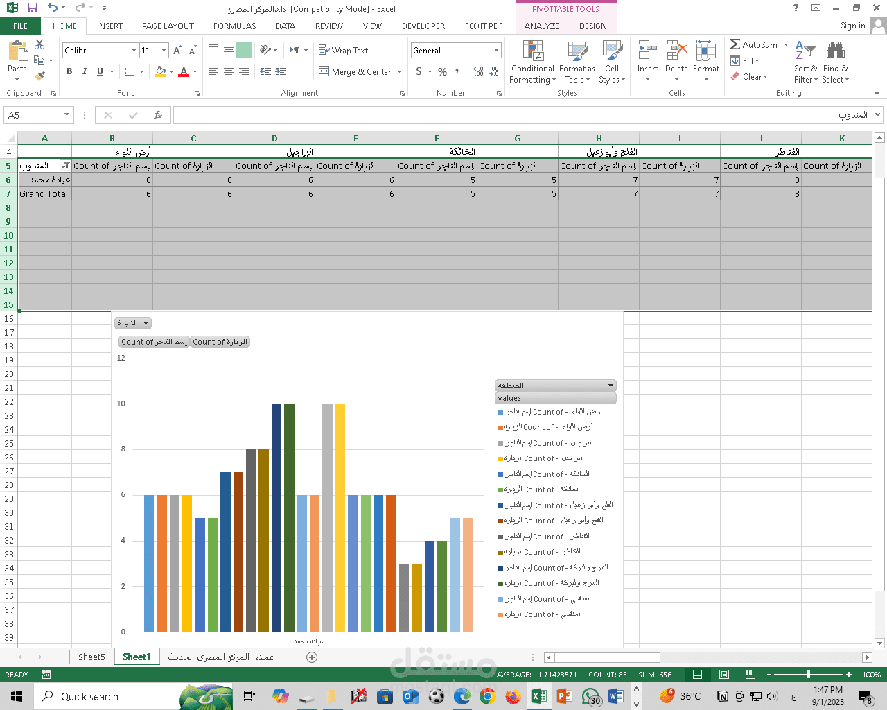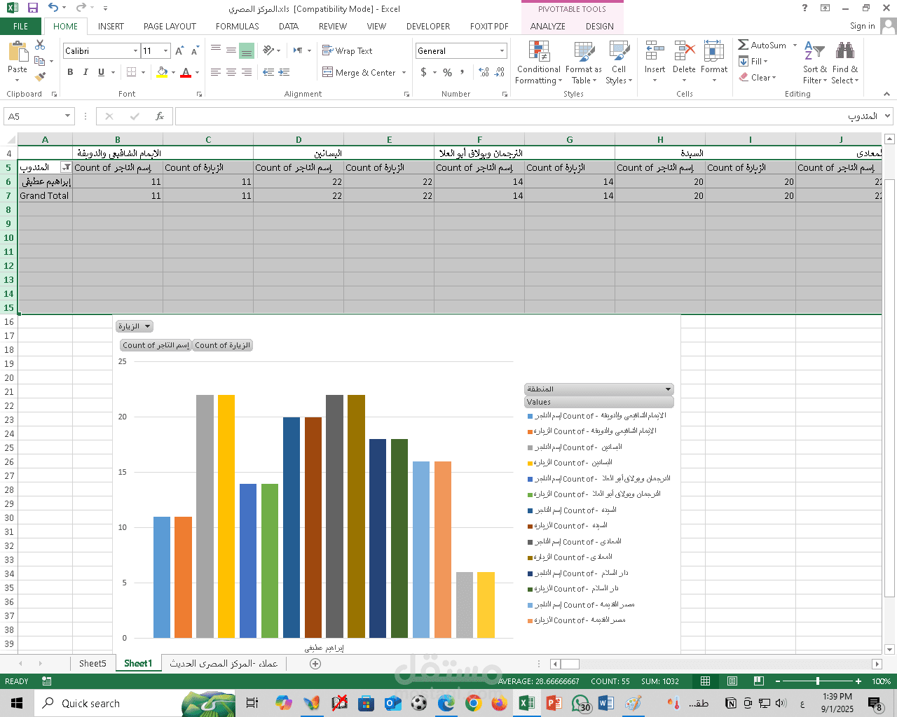 بدأت من ملف العملاء الأساسي الذي يحتوي على (اسم التاجر – اسم المنطقة – اسم المندوب).