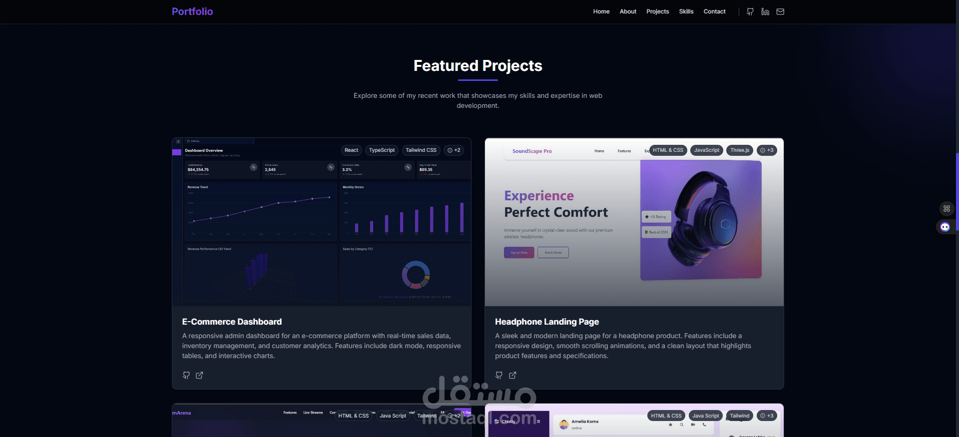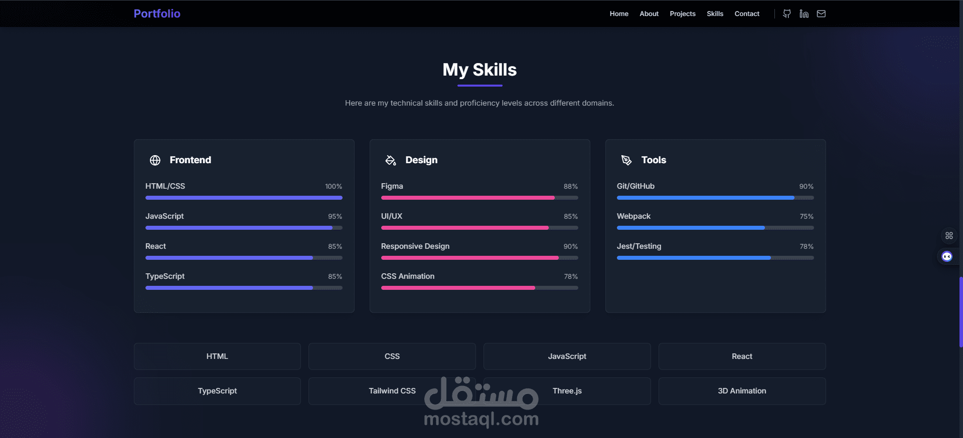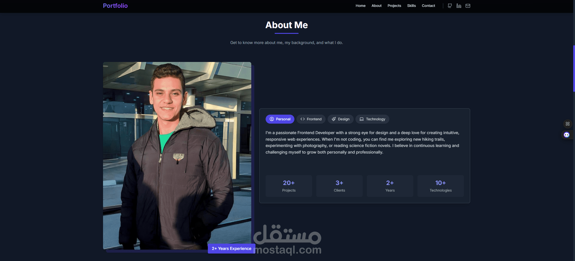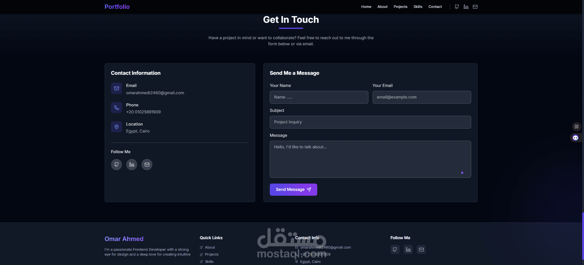 إنشاء واجهة احترافية تعكس مهاراتي كمطور واجهات أمامية، وتساعد في عرض الأعمال السابقة بطريقة جذابة تسهّل التواصل مع العملاء المحتملين.