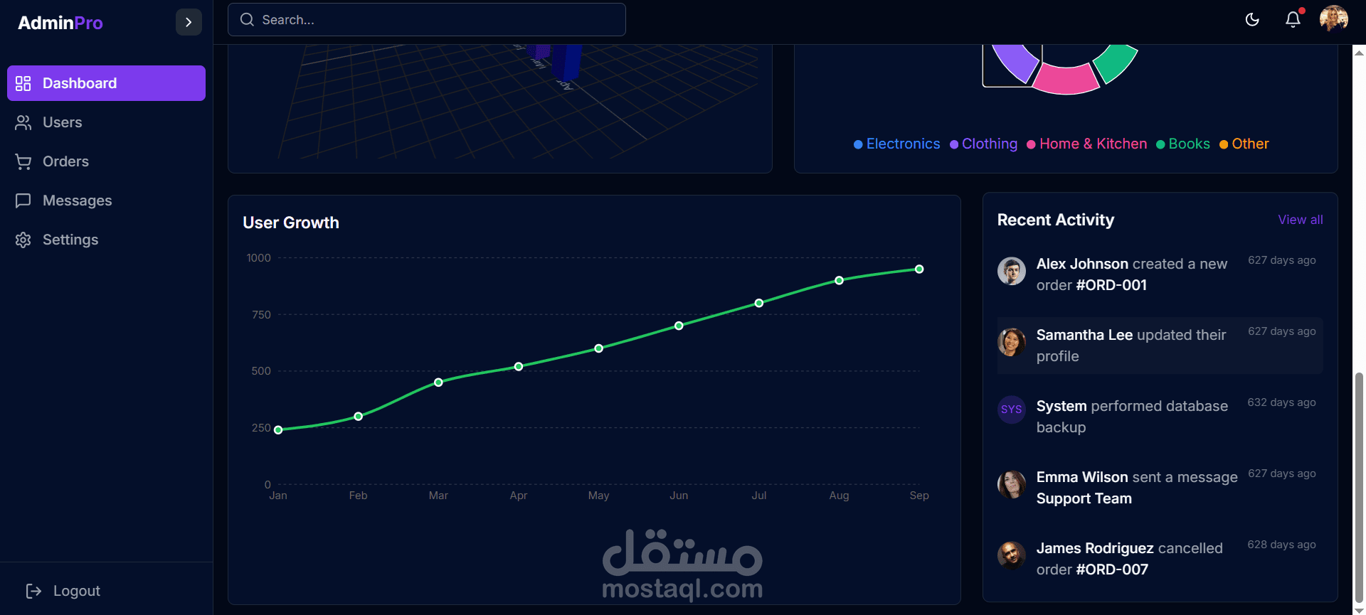 لوحة تحكم إدارية حديثة – React Admin Dashboard
