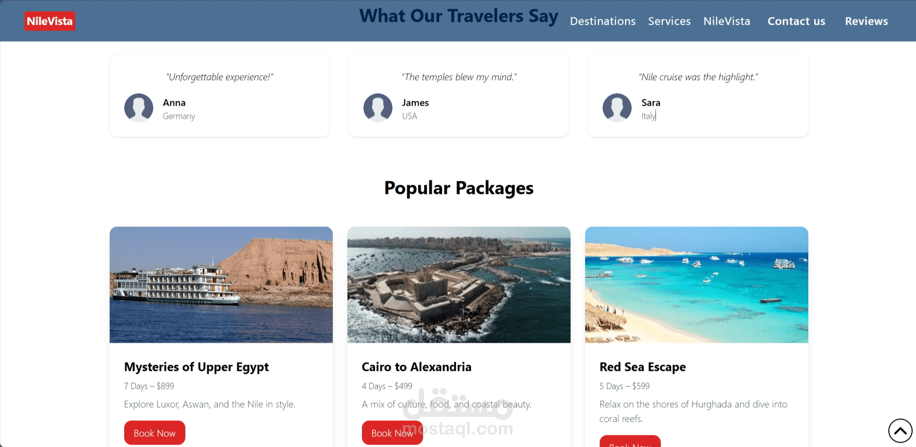 هذا التصميم قابل للتخصيص بالكامل لشركات السياحة والسفر في مصر.