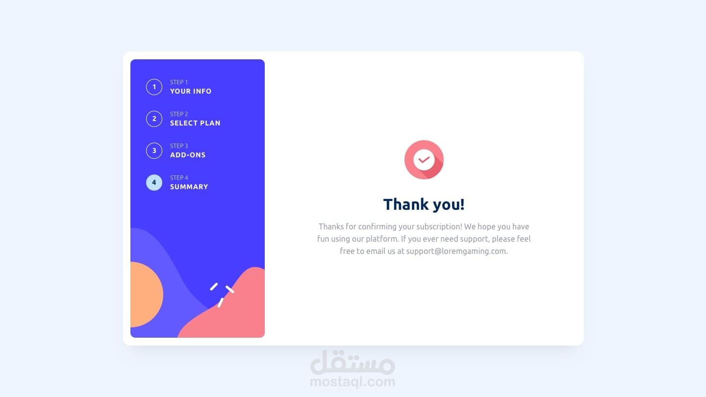 نموذج متعدد المراحل متجاوب وتفاعلي مَبني باستخدام جافاسكريبت العادي (Vanilla JS).