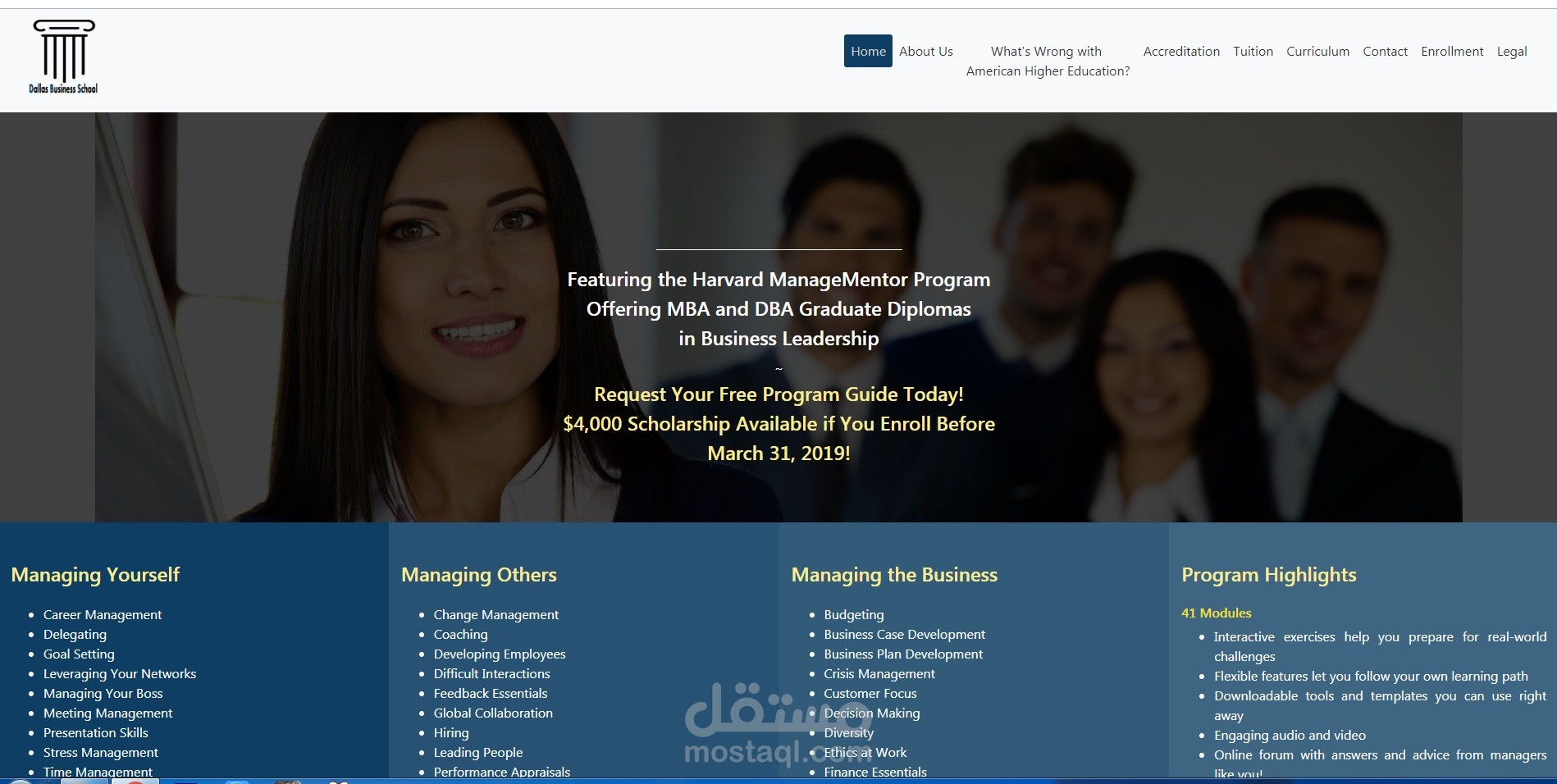 تصميم لموقع مدرسة لتعليم إدارة الأعمال