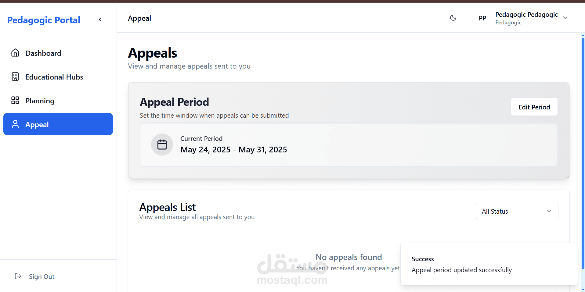 لوحة تحكم تفاعلية لإدارة المحتوى والبيانات البيداغوجية