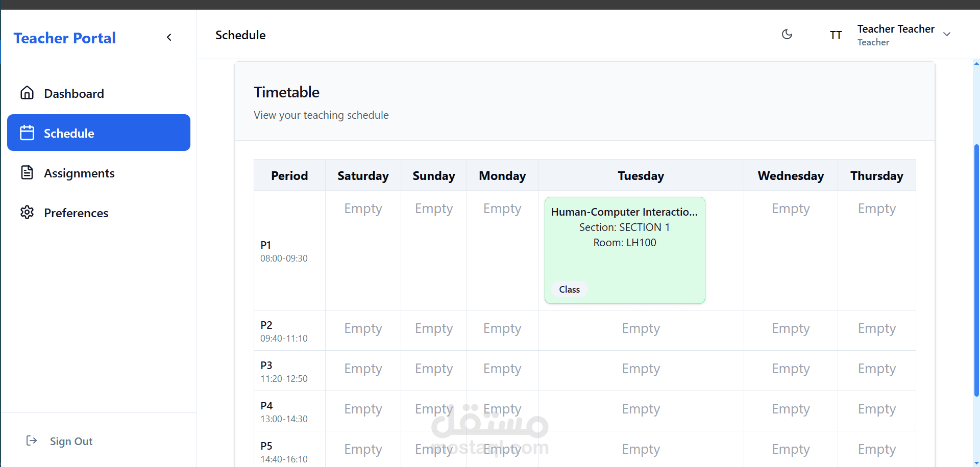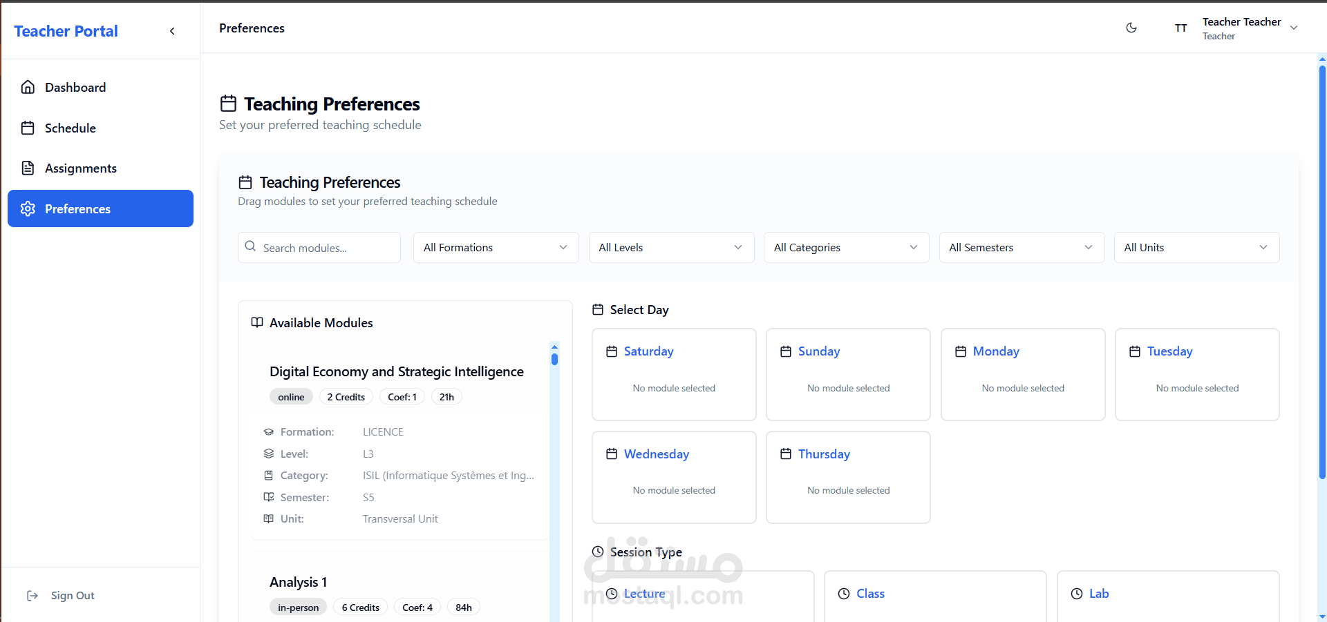 هي منصة ويب تفاعلية مبنية باستخدام مكتبة React، بتصميم متجاوب (Responsive) يتكيف مع جميع الأجهزة، وتدعم الوضع الليلي (Dark Mode)، وتتمتع بأسلوب تصميم حديث وجذاب.