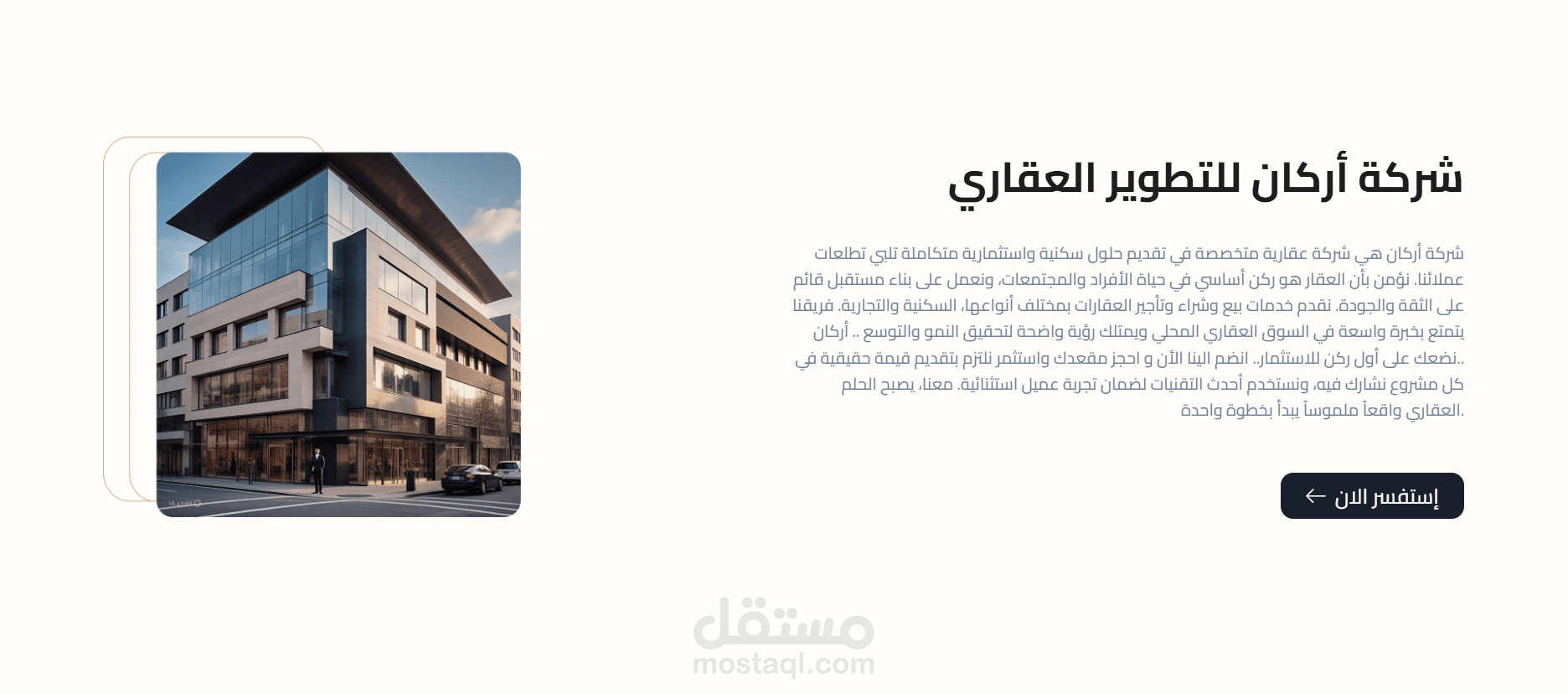 تصميم واجهة رئيسية احترافية تعكس هوية الشركة العقارية.