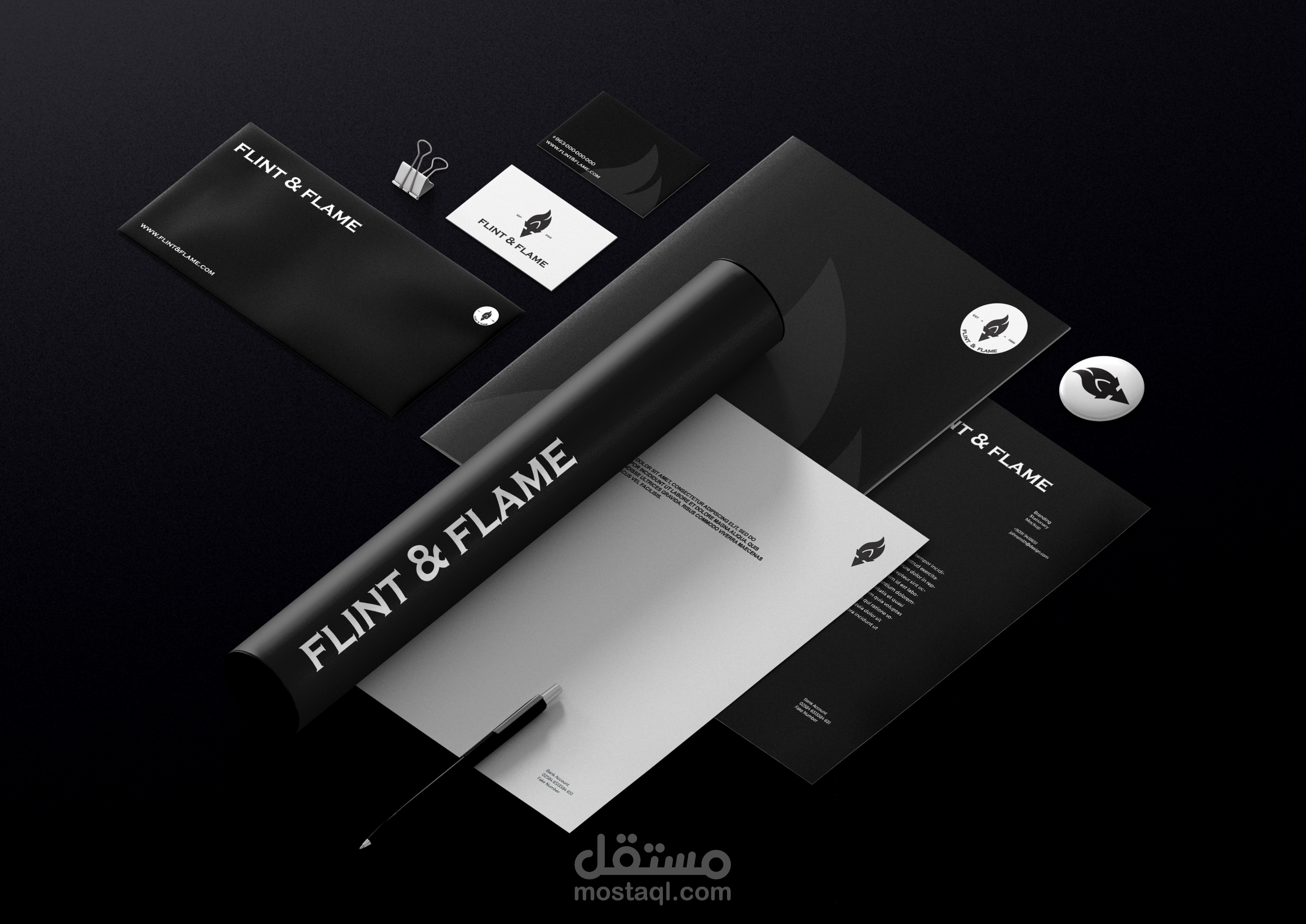 تم تصميم الهوية البصرية لعلامة FLINT & FLAME بأسلوب أنيق وبسيط يعكس روح العلامة المتخصصة في إنتاج الطاقة والمنتجات المتعلقة بالفحم. استند التصميم إلى مبدأ التوازن بين القوة والوضوح البصري، مع الحفاظ على لمسة من الفخامة والدقة.