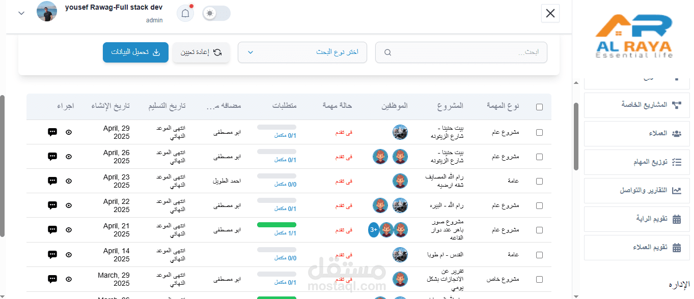 1- اداره مشاريع واضافه جميع بياناته والمرفقات الخاصة بها