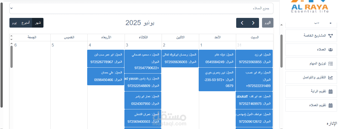 5- اداره العملاء وكل مستخدم بيظهر ليه فقط العملاء خاصين فيه ما عد الادمن بيظهرله جميع العملاء