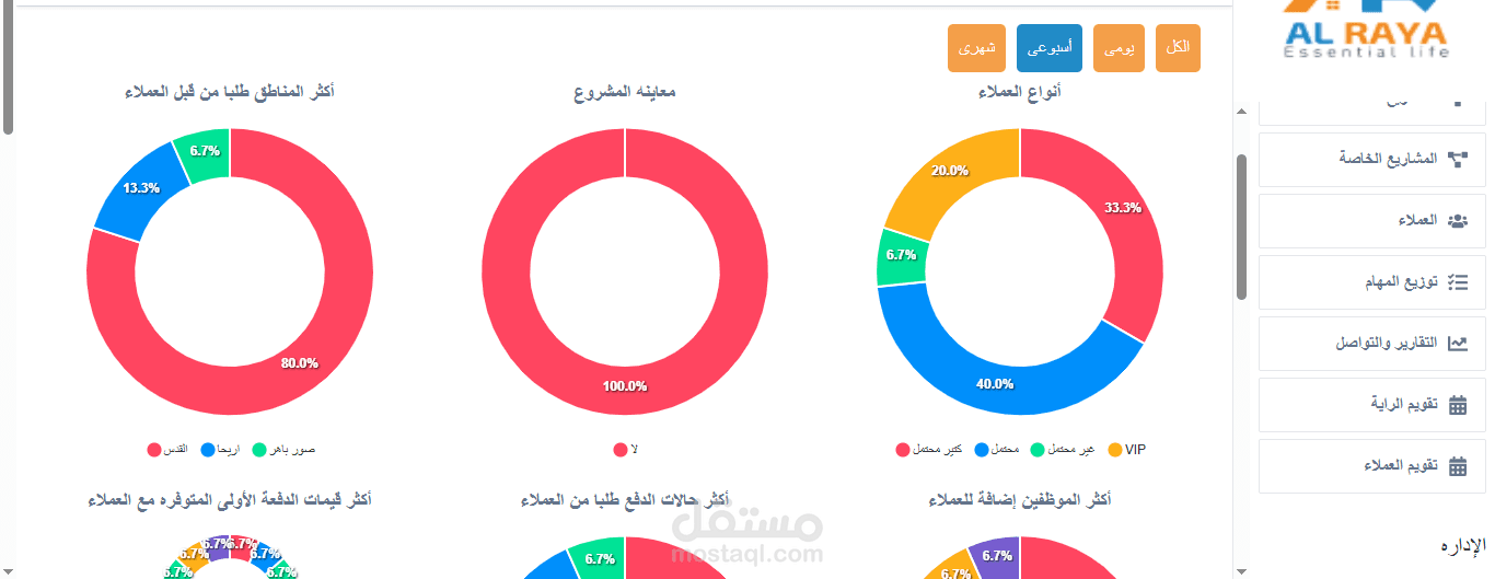 11- احصائيات عن كل موظف مثل اكثر مظفين اضافه للعملاء سواء شهر- اسبوعى- يومى