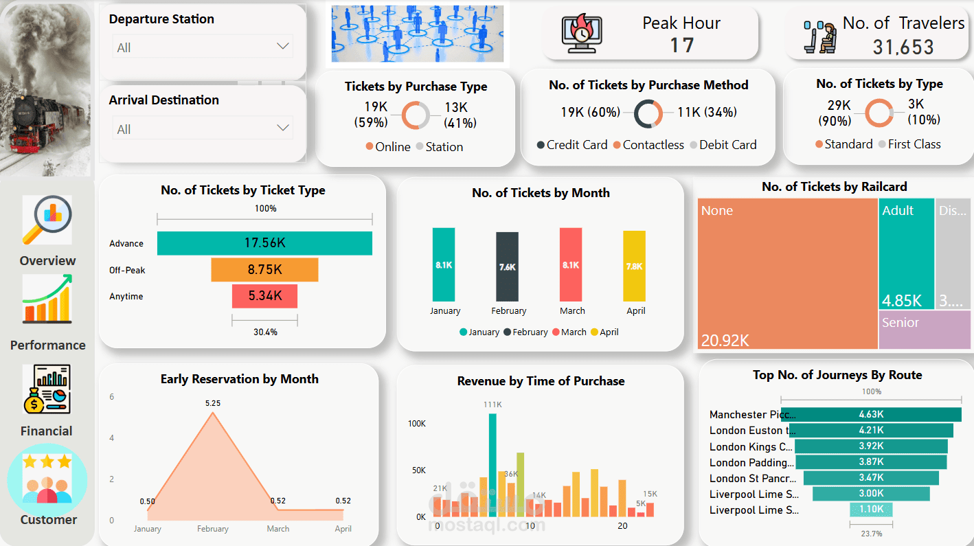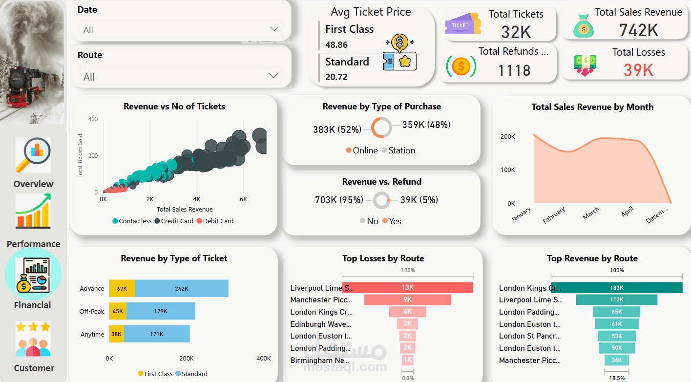 درست توزيع التذاكر حسب الفئة (Standard – First Class) ونوع الرحلة (Peak – Off-Peak).