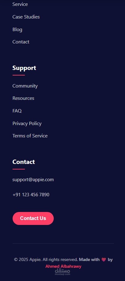 Footer: تذييل متكامل مع روابط التواصل والدعم