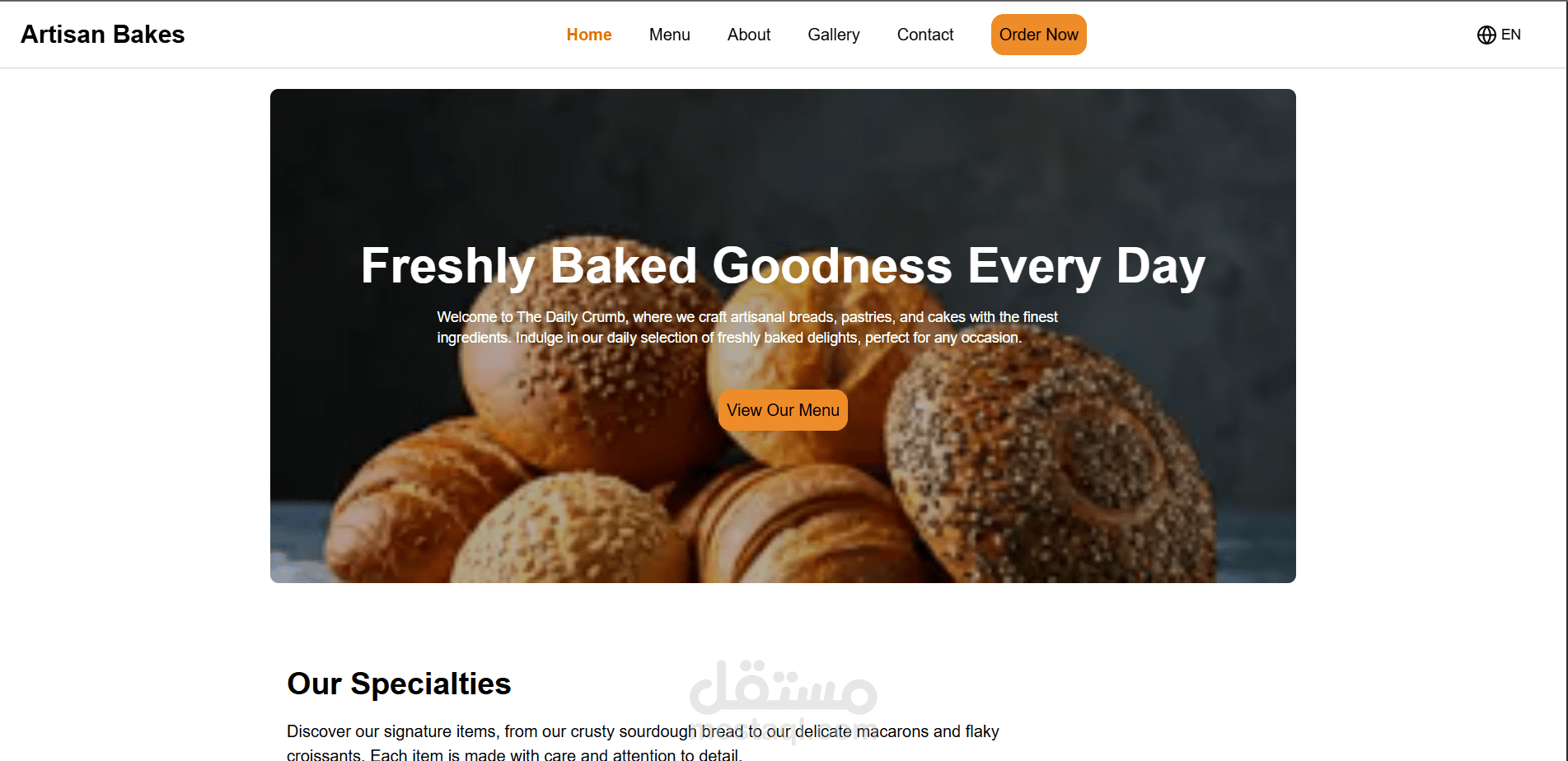 منصة تجارة إلكترونية حديثة مبنية باستخدام Next.js وواجهة مستخدم مصممة بـ Tailwind CSS لمخبز 'The Daily Crumb' الحِرفي. يعرض هذا الموقع تشكيلة يومية من المخبوزات الطازجة، بما في ذلك الخبز الحِرفي، والمعجنات الرقيقة، والكرواسون الهش، مع التركيز على جودة الصنعة وأجود المكونات. تتميز المنصة بواجهة سهلة الاستخدام لعرض القائمة وإجراء الطلبات عبر الإنترنت. كما أنها متجاوبة (Responsive) تماماً مع مختلف الأجهزة، وتدعم اللغتين الإنجليزية والعربية، مما يبرز القدرات في تطوير الواجهات الأمامية (Front-end). كما يحتوي علي انيميشن جذاب باستخدام Framer motion لجذب العملاء وابهارهم.