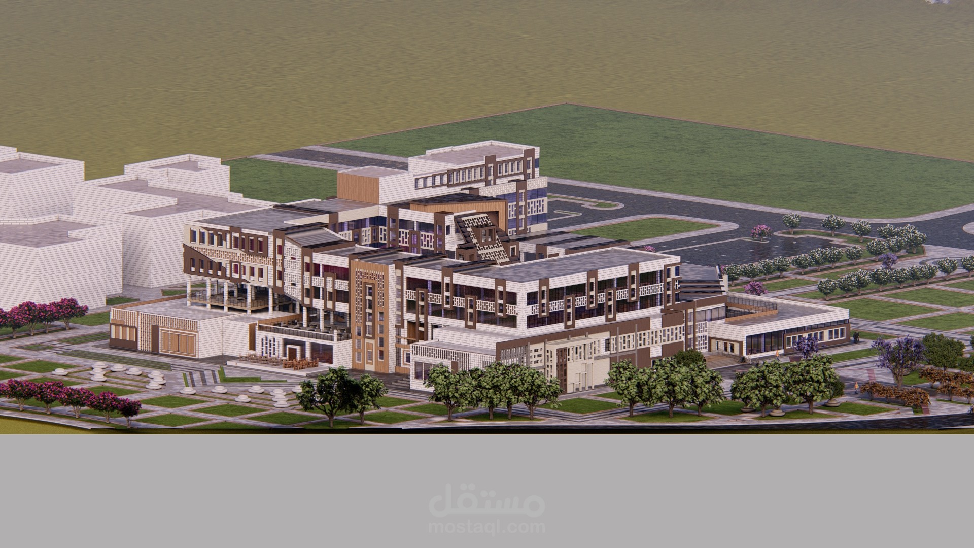 مشروع كلية هندسة وعمارة يحتوي على قسم ( تخطيط حضري - تصميم معماري )