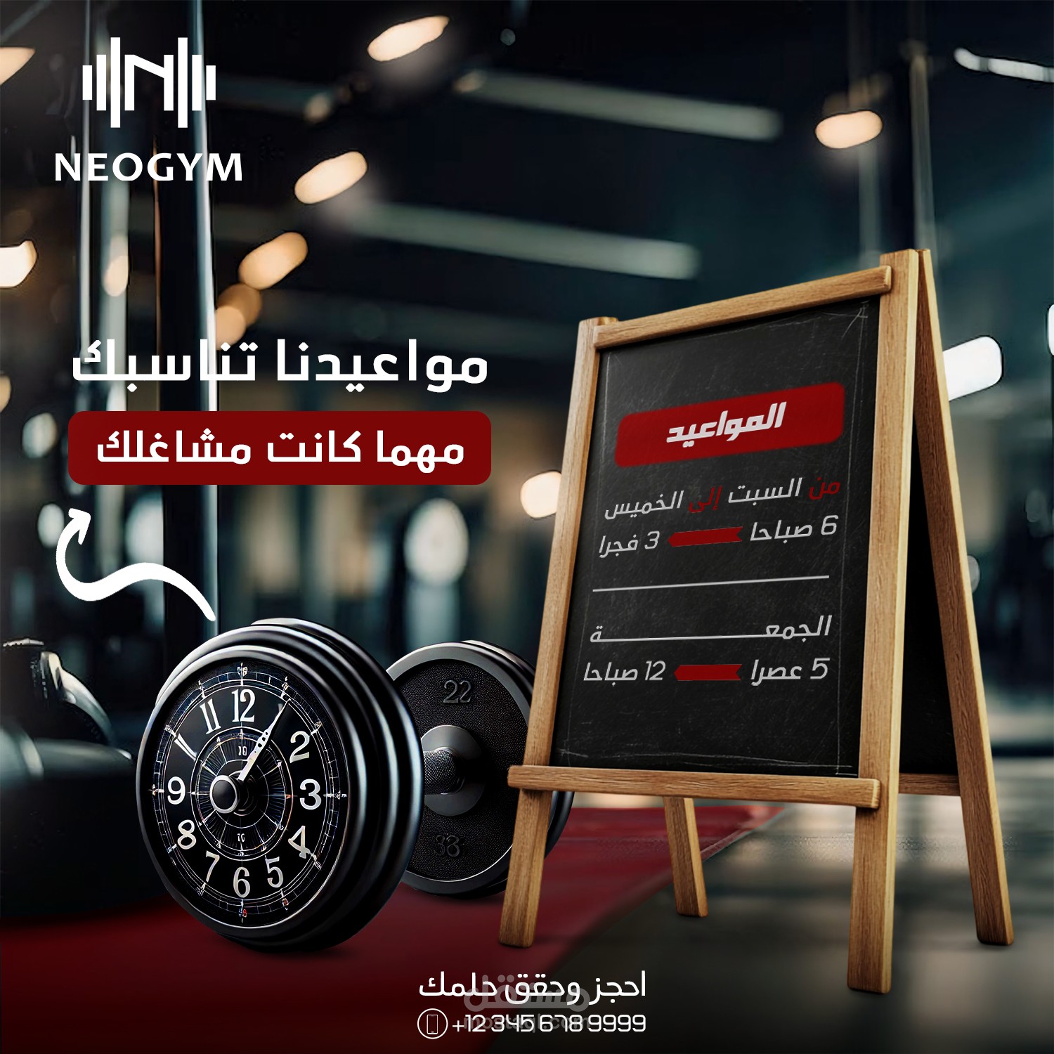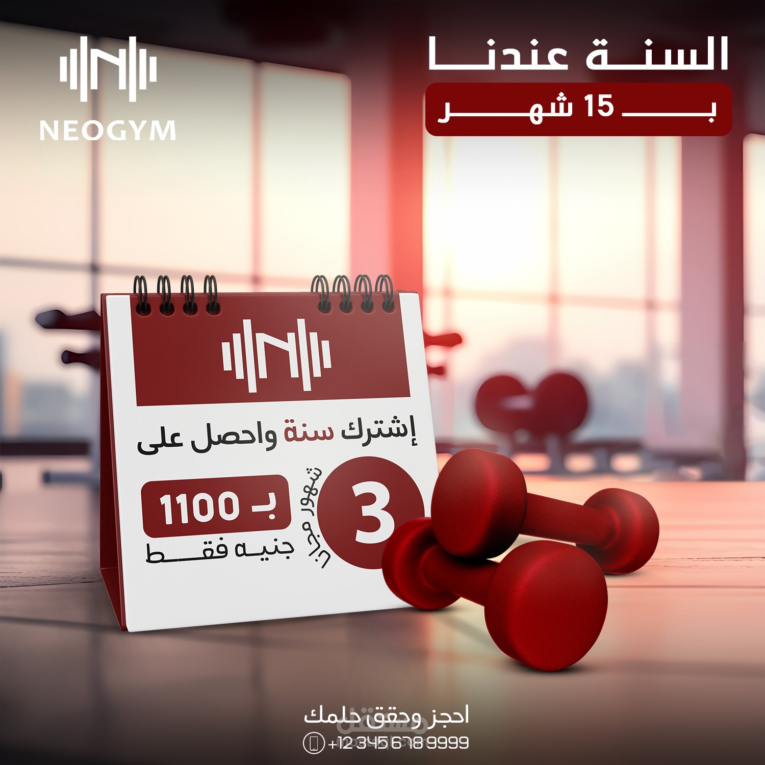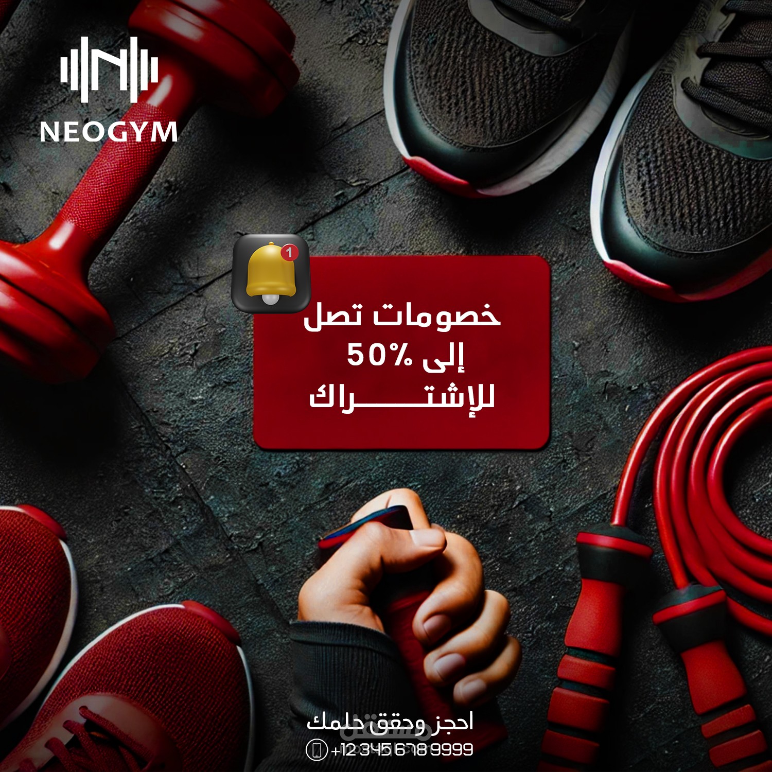 تصاميم سوشيال ميديا ل NEOGYM مع الحفاظ على الوان الهوية البصرية مع افكار ابداعية و مبتكرة لوصف معنى الديزاين عن طريق افكاره بدون الحاجة لكتابة وصف له