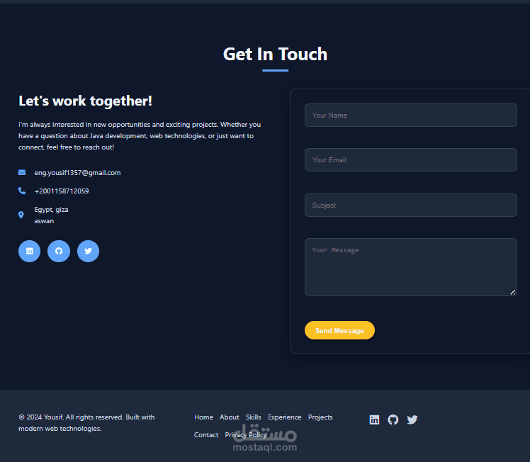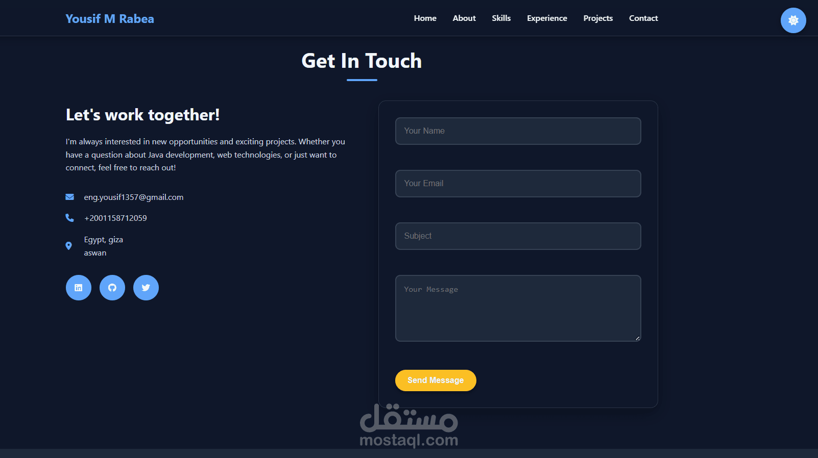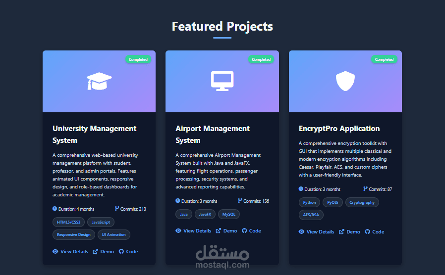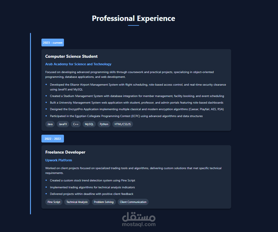 * **المشاريع**: معرض أعمال احترافي يعرض مشاريعك السابقة