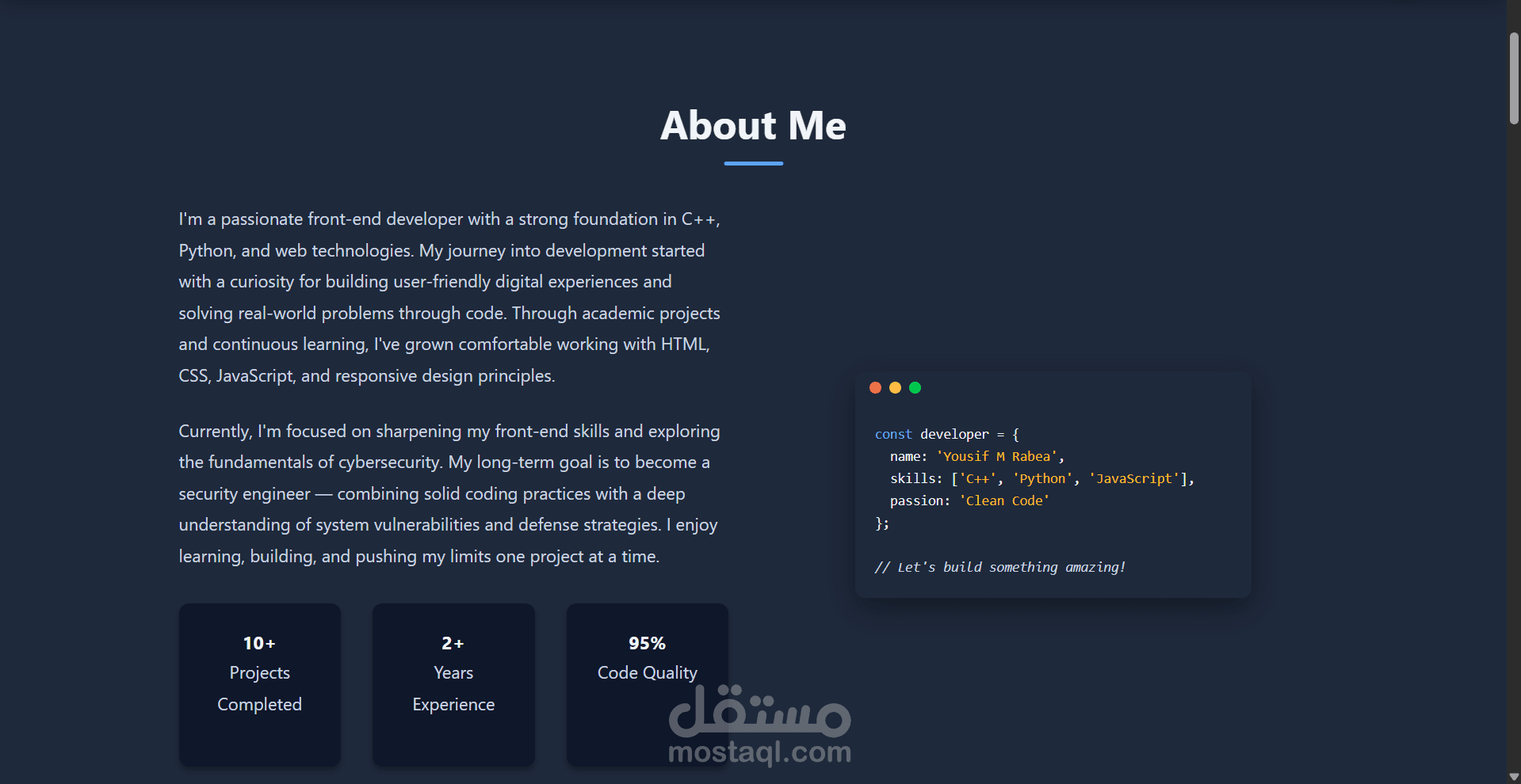 موقع شخصي احترافي (Portfolio) لعرض أعمالك ومهاراتك**