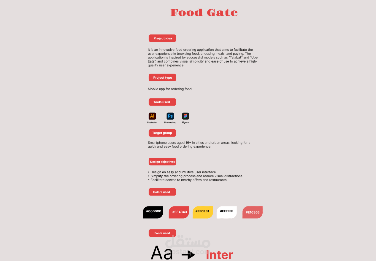 “Food Gate” هو تطبيق إلكتروني مبتكر يهدف إلى تسهيل تجربة طلب الطعام للمستخدمين من خلال واجهة استخدام سهلة، جذابة، وفعالة.