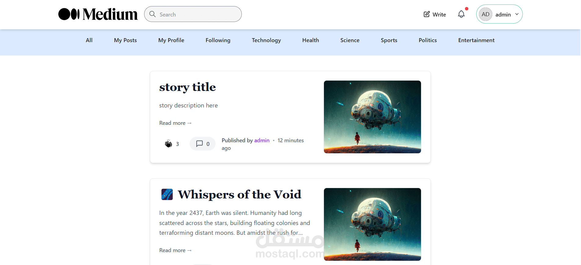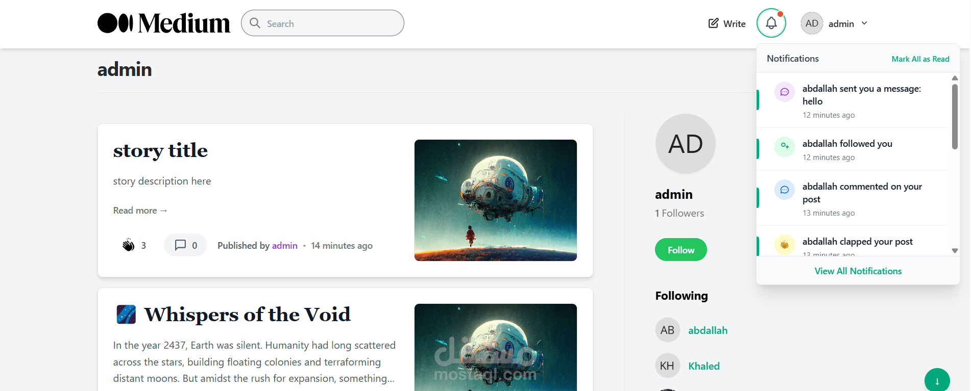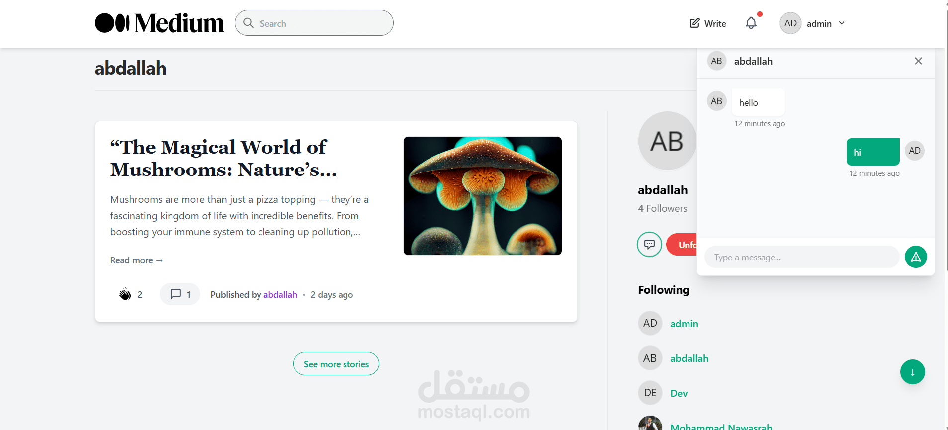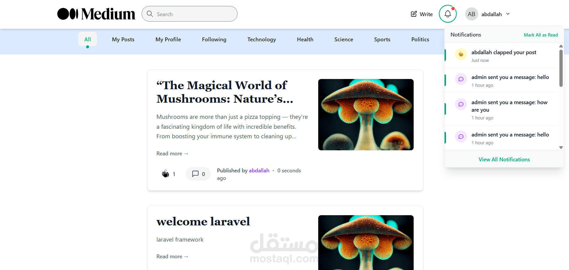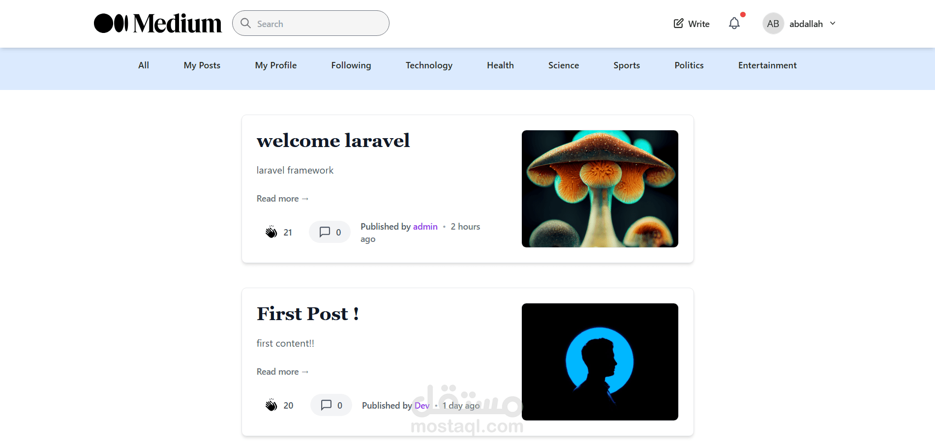 A fully-featured Medium-style blogging platform built with Laravel 12, TailwindCSS, Alpine.js, AJAX, and Pusher. This application provides a rich set of social and real-time features similar to Medium, including user interaction, post creation, and a live chat system.