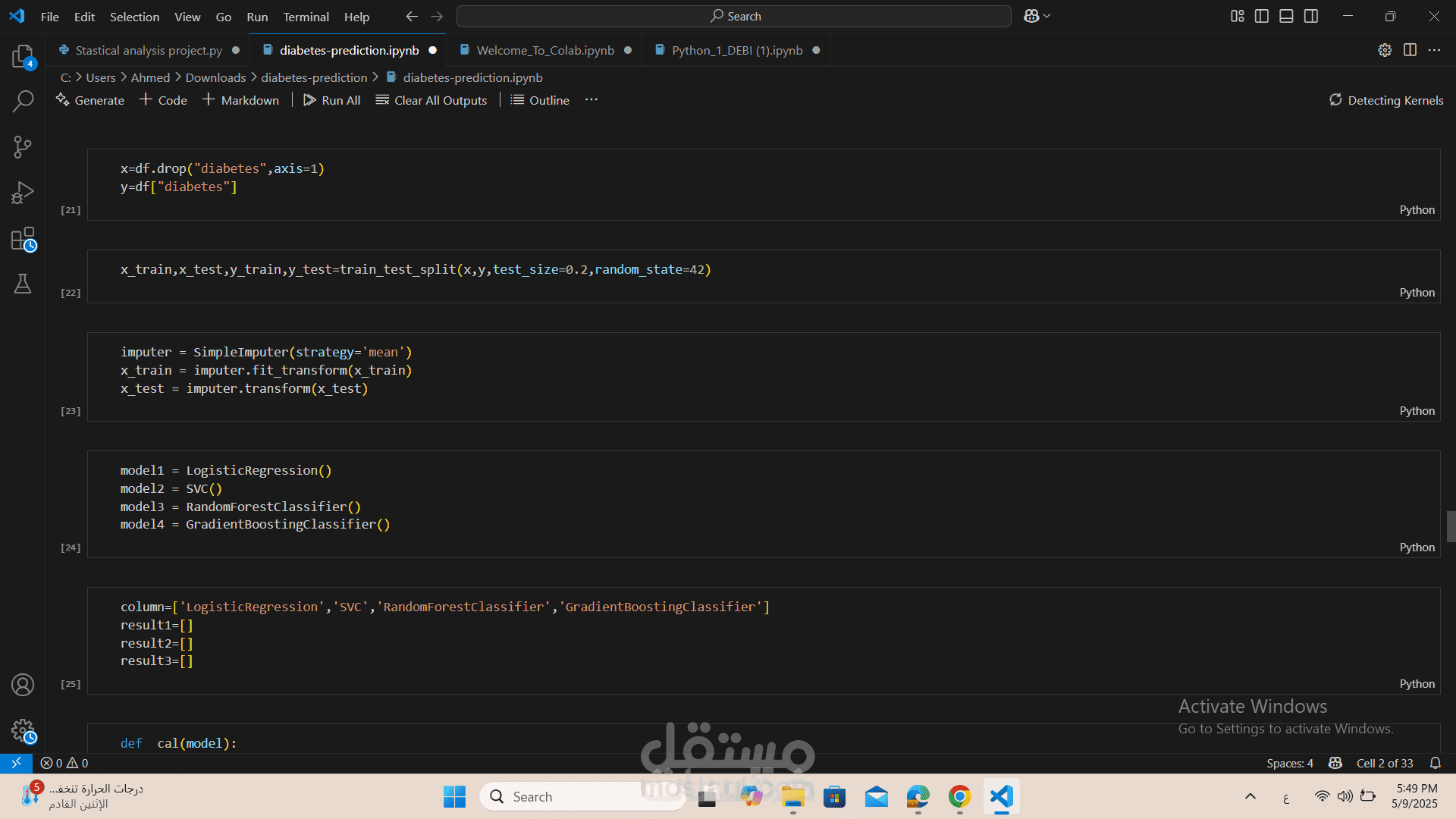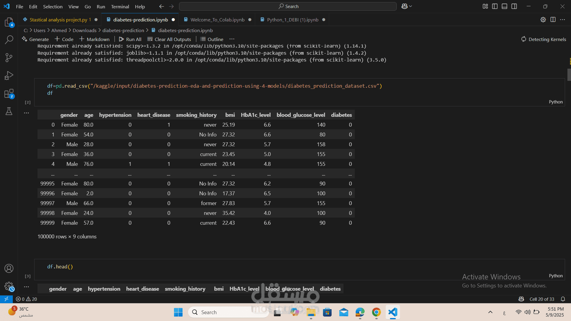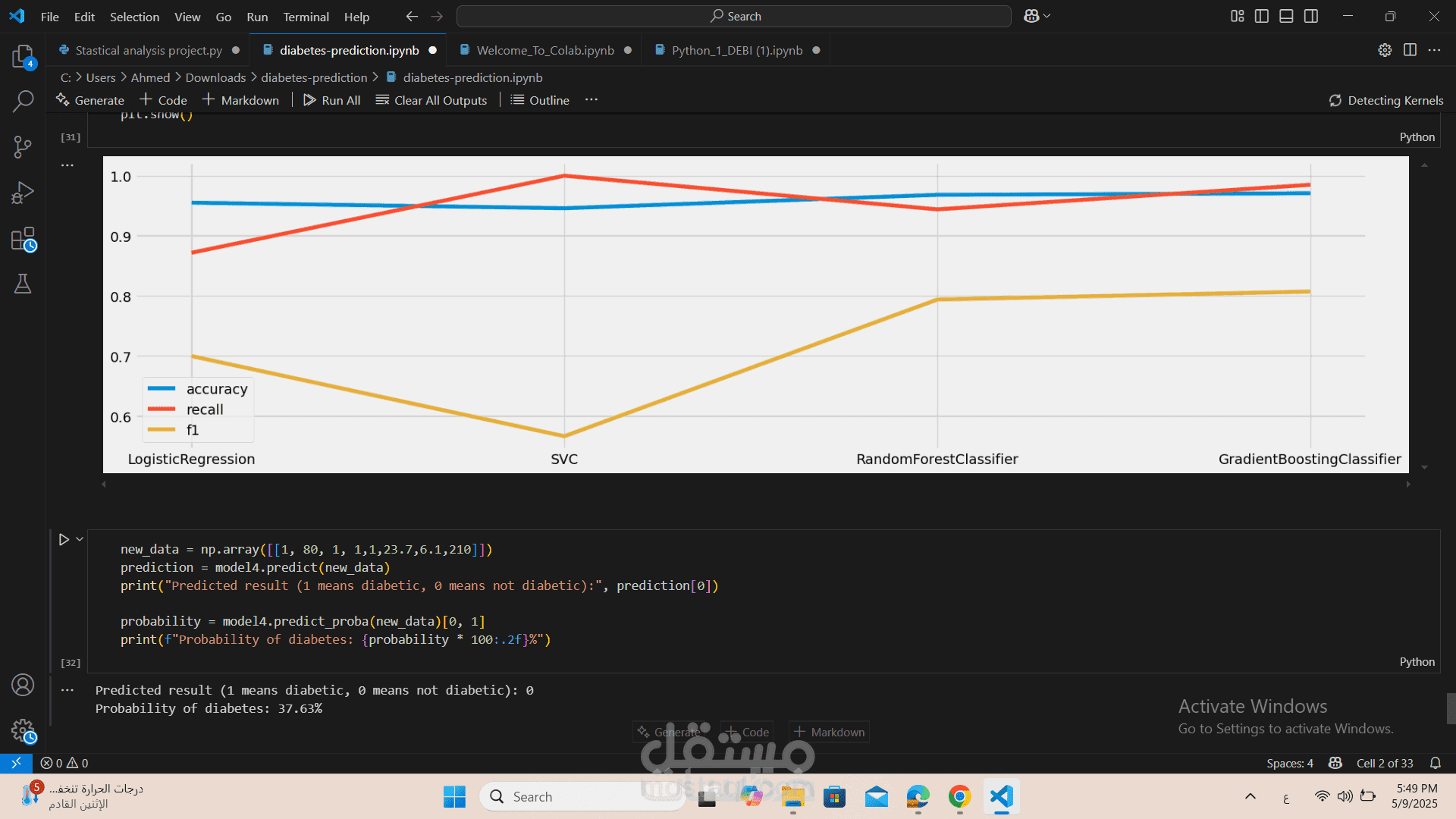 نموذج ذكاء اصطناعي للتنبؤ بمرض السكري من بياناتك بدقة عالية.