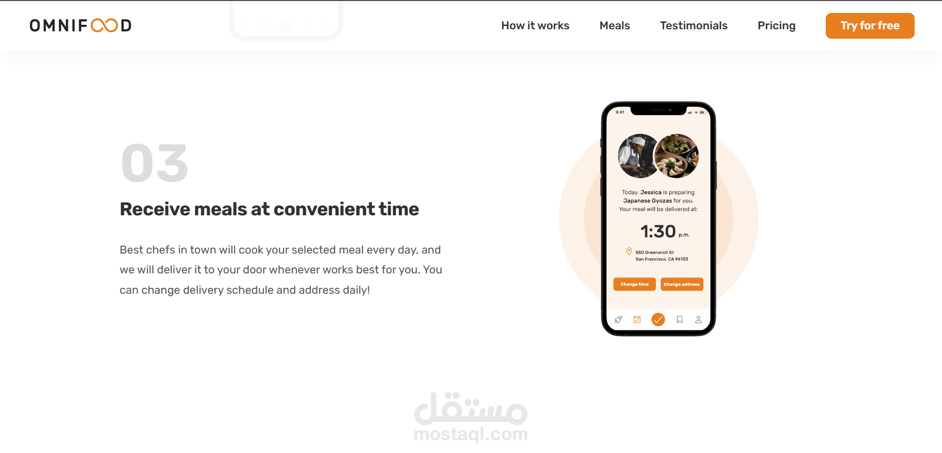 Features Section describing key benefits like fast delivery, customizable meals, and high-quality ingredients.