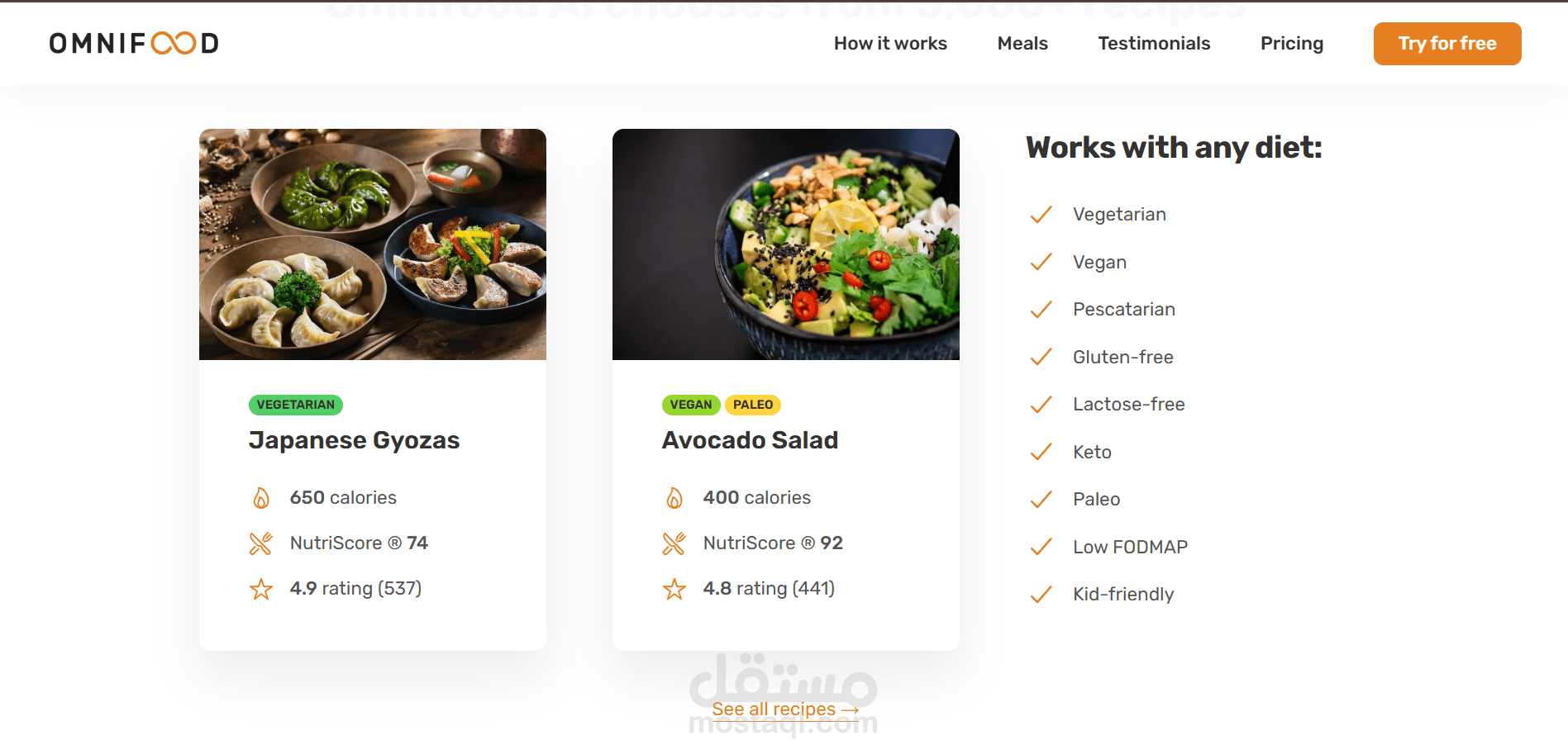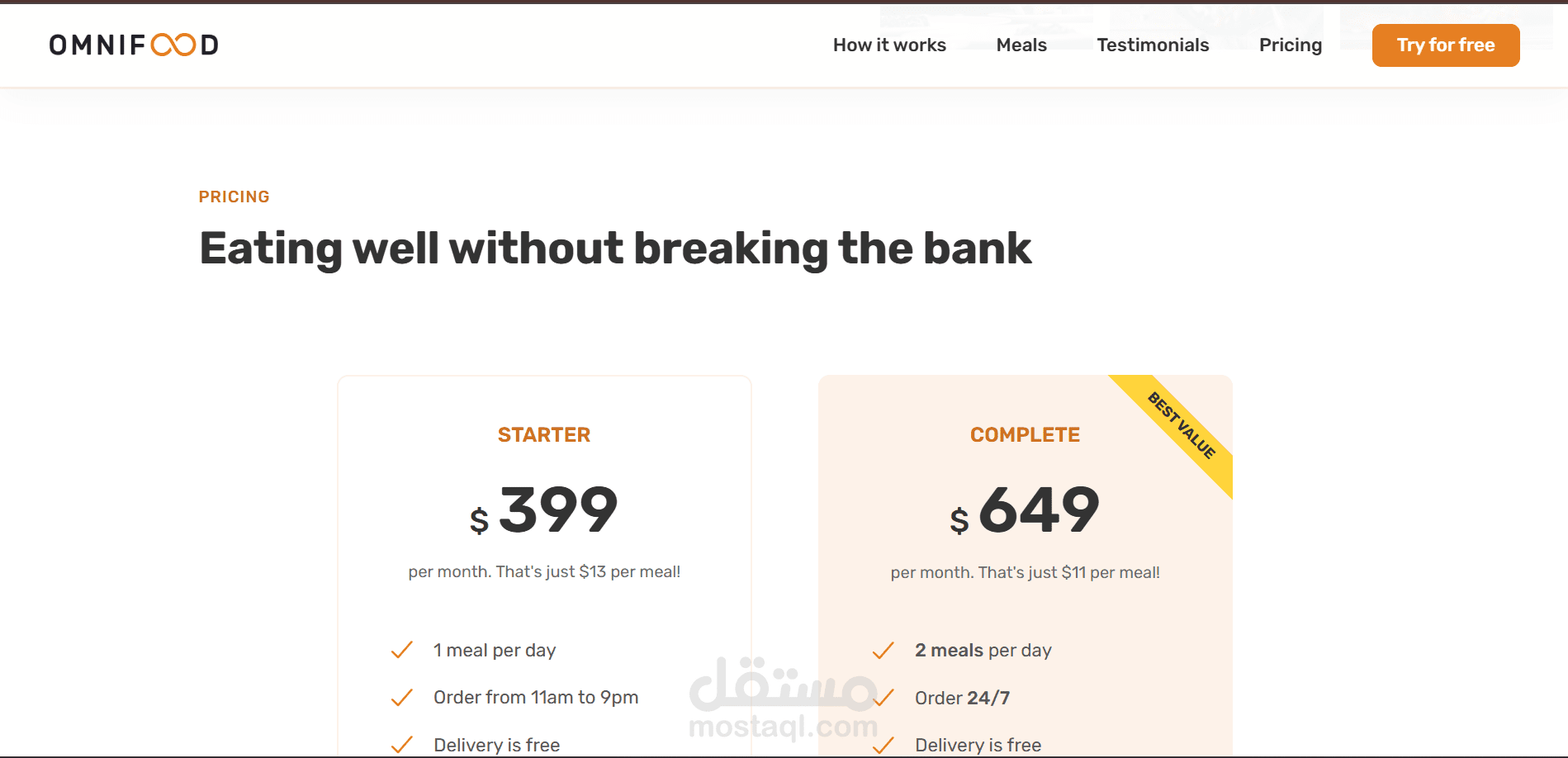 Meals Section displaying popular meal options with high-quality images and descriptions.