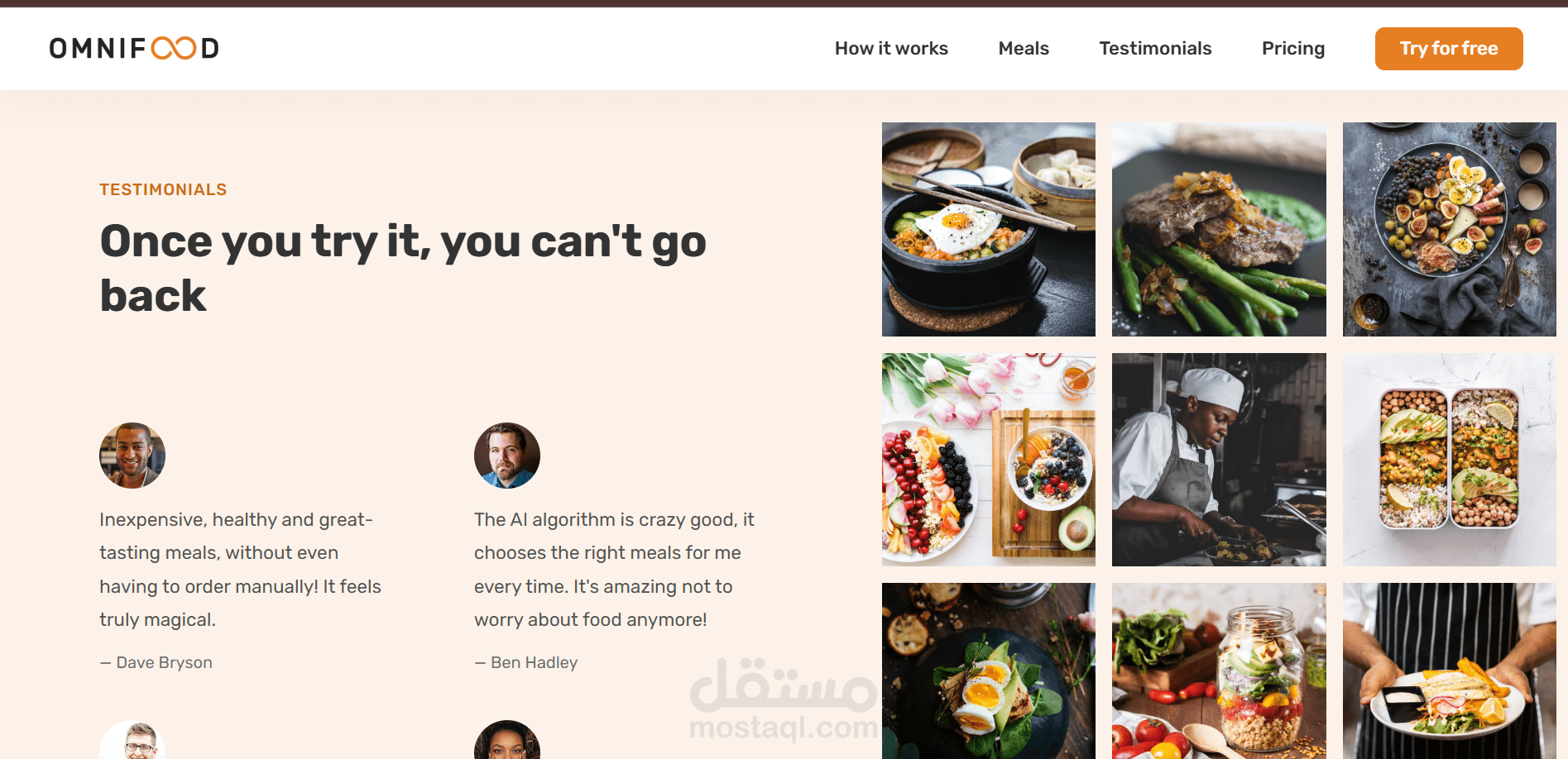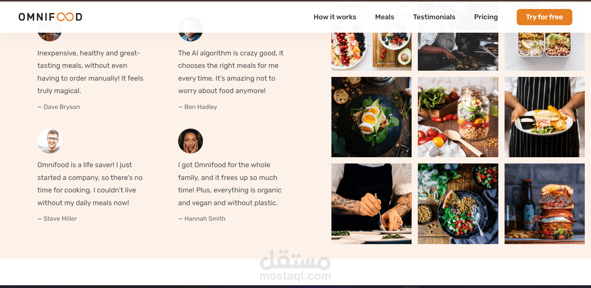 Testimonials Section featuring customer reviews for building trust and credibility.