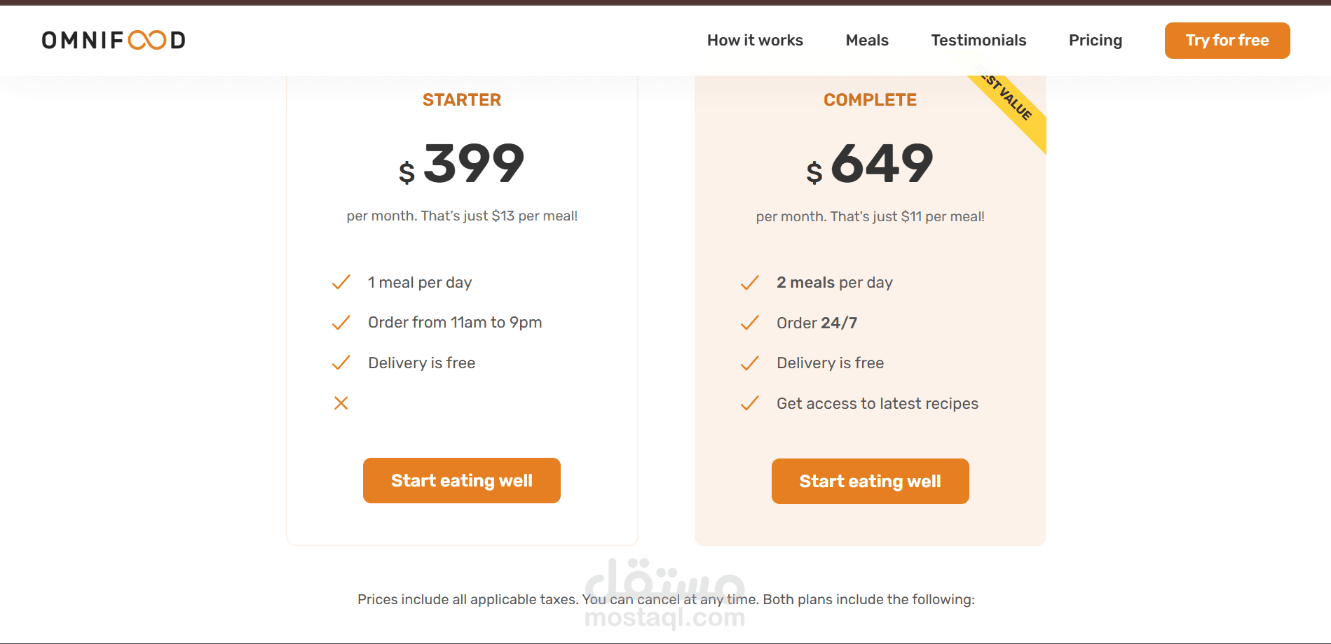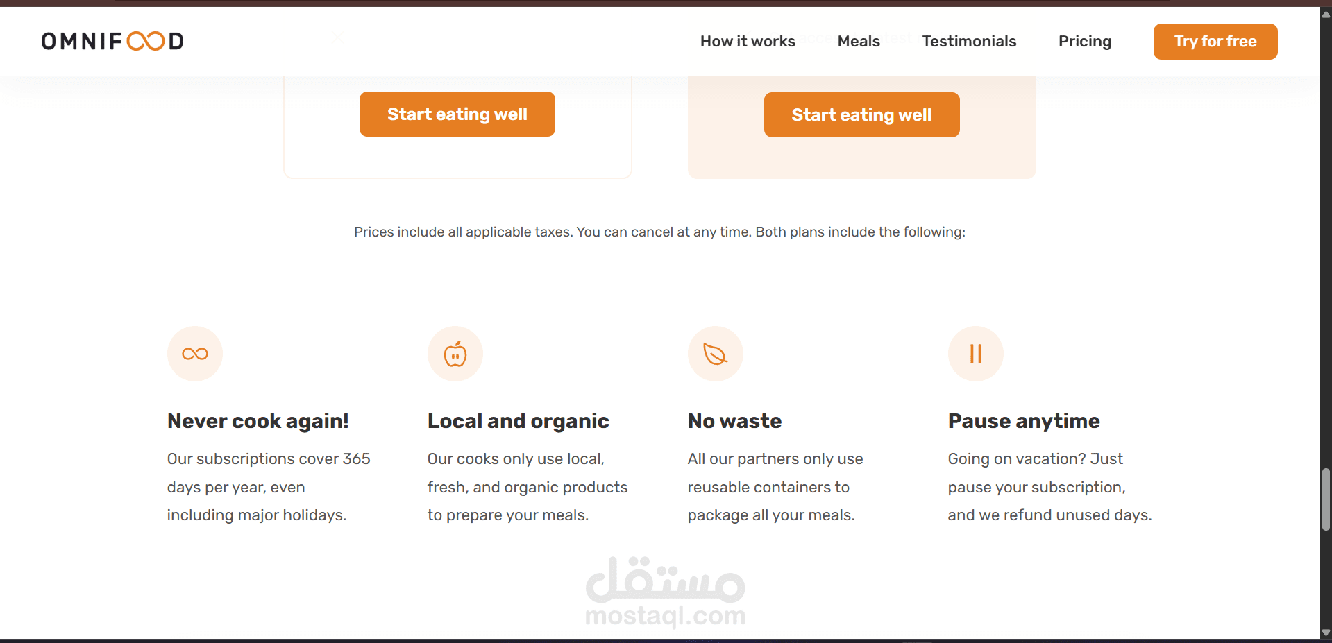 How It Works Section showing a 3-step process for subscribing and receiving meals.