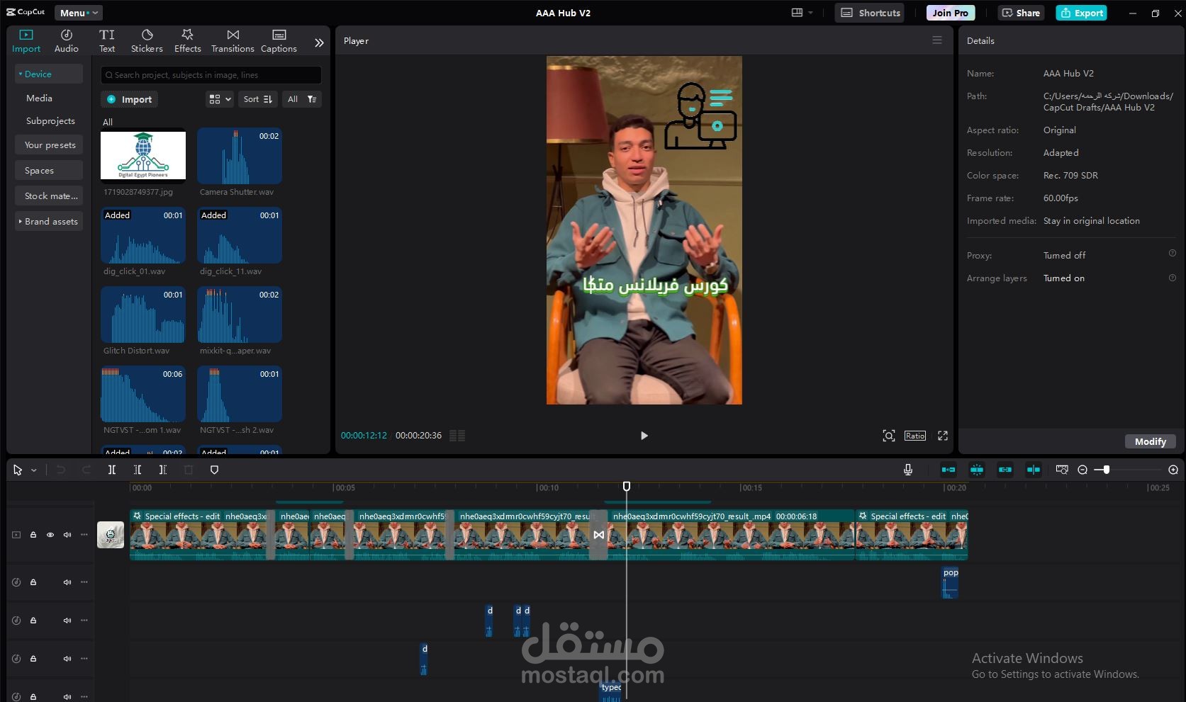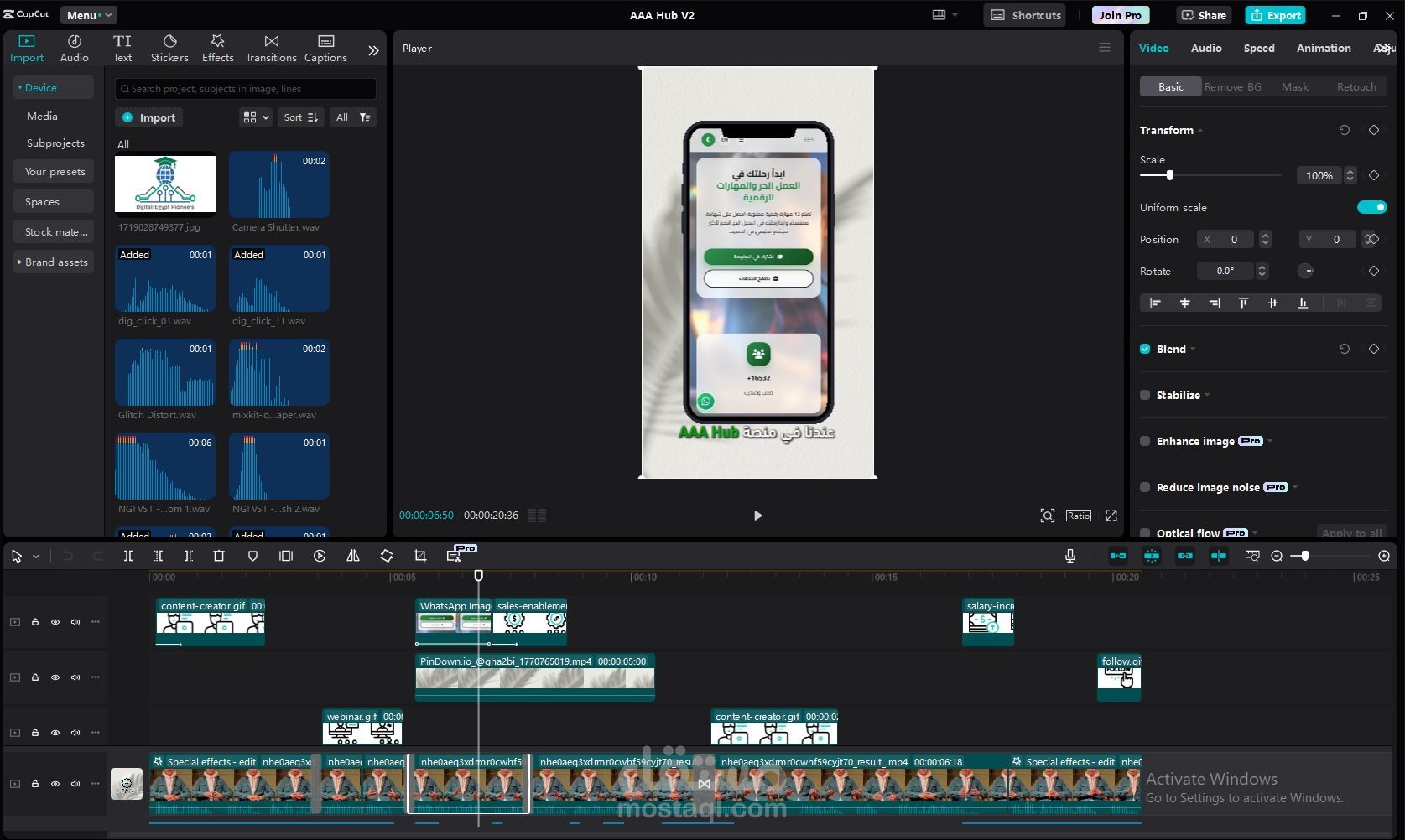 تحريك الرسوم والمؤثرات الصوتية والبصرية لجعل الفيديو مشوق وجذاب للمشاهدين.