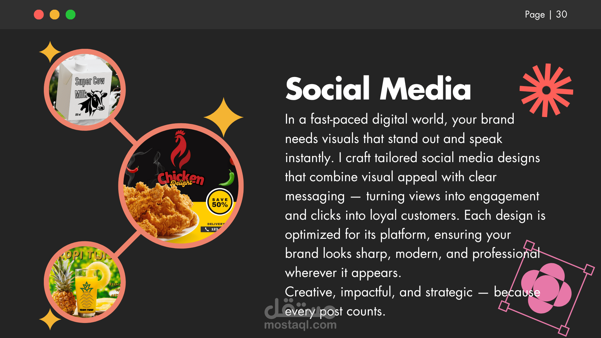 2) تصميم بوستات واعلانات السوشيال ميديا.