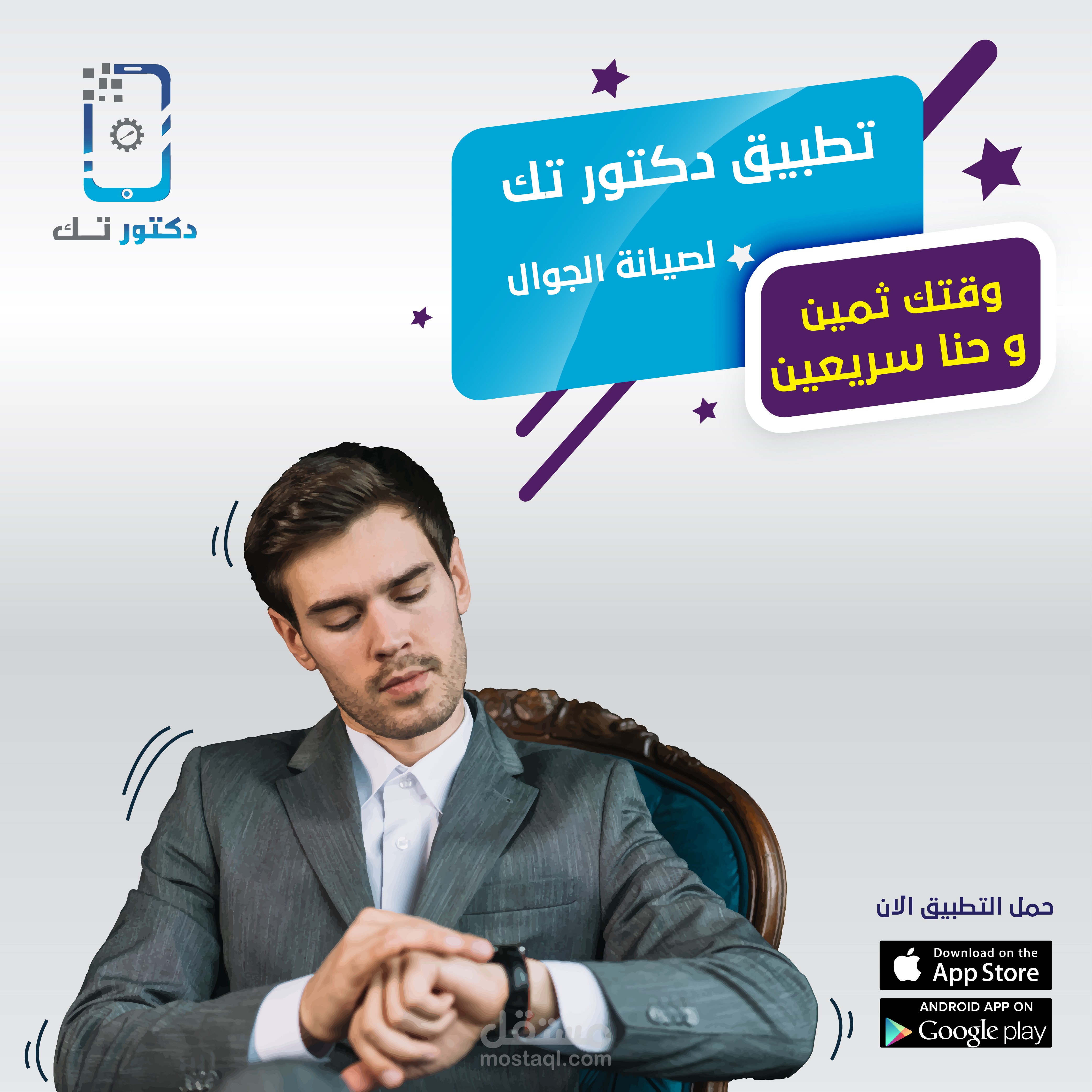 تصميمات سوشيال ميديا لتطبيق دكتور تك لصيانة الجوال