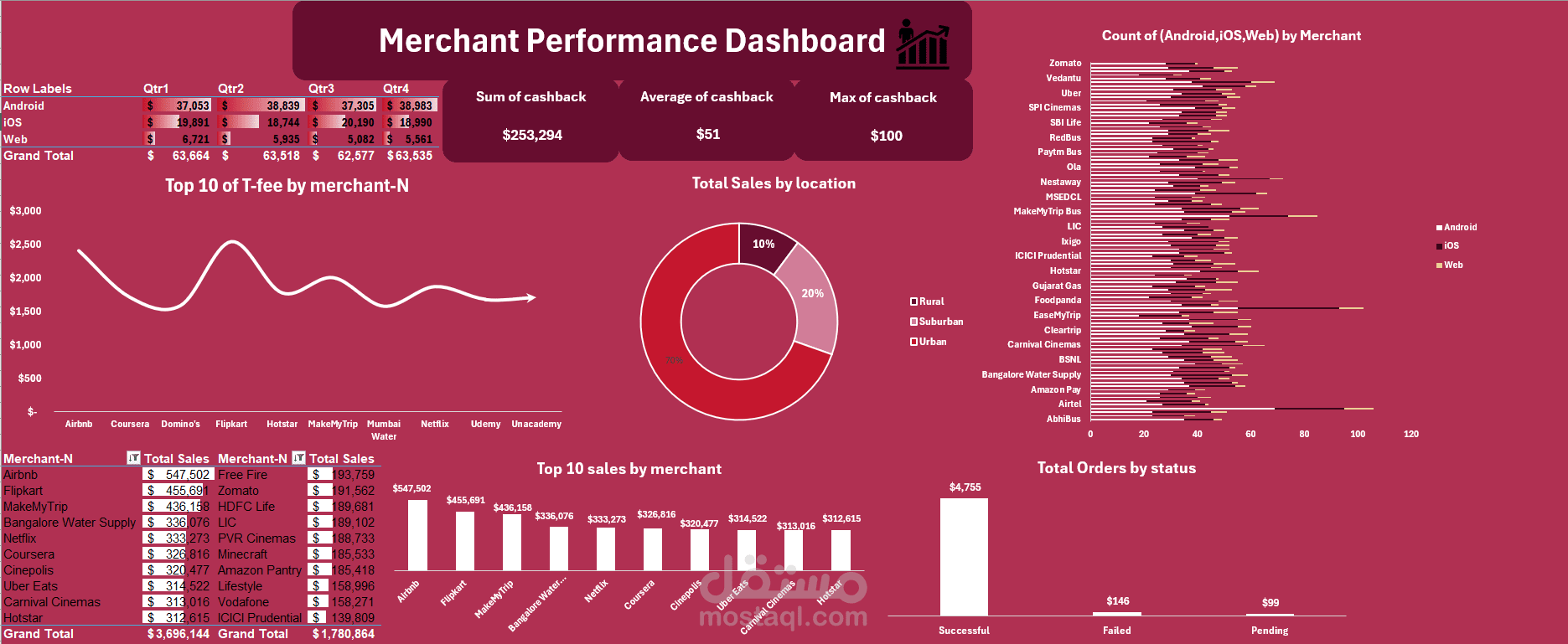 ? اللوحة الأولى: لوحة أداء التجار – Merchant Performance Dashboard