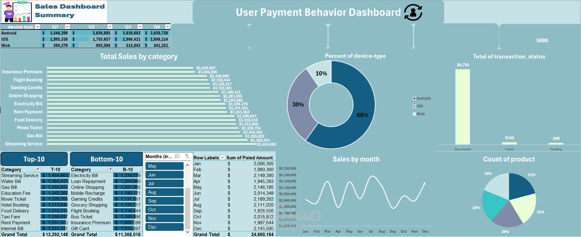 اللوحة الثانية: لوحة سلوك المستخدم – User Payment Behavior Dashboard
