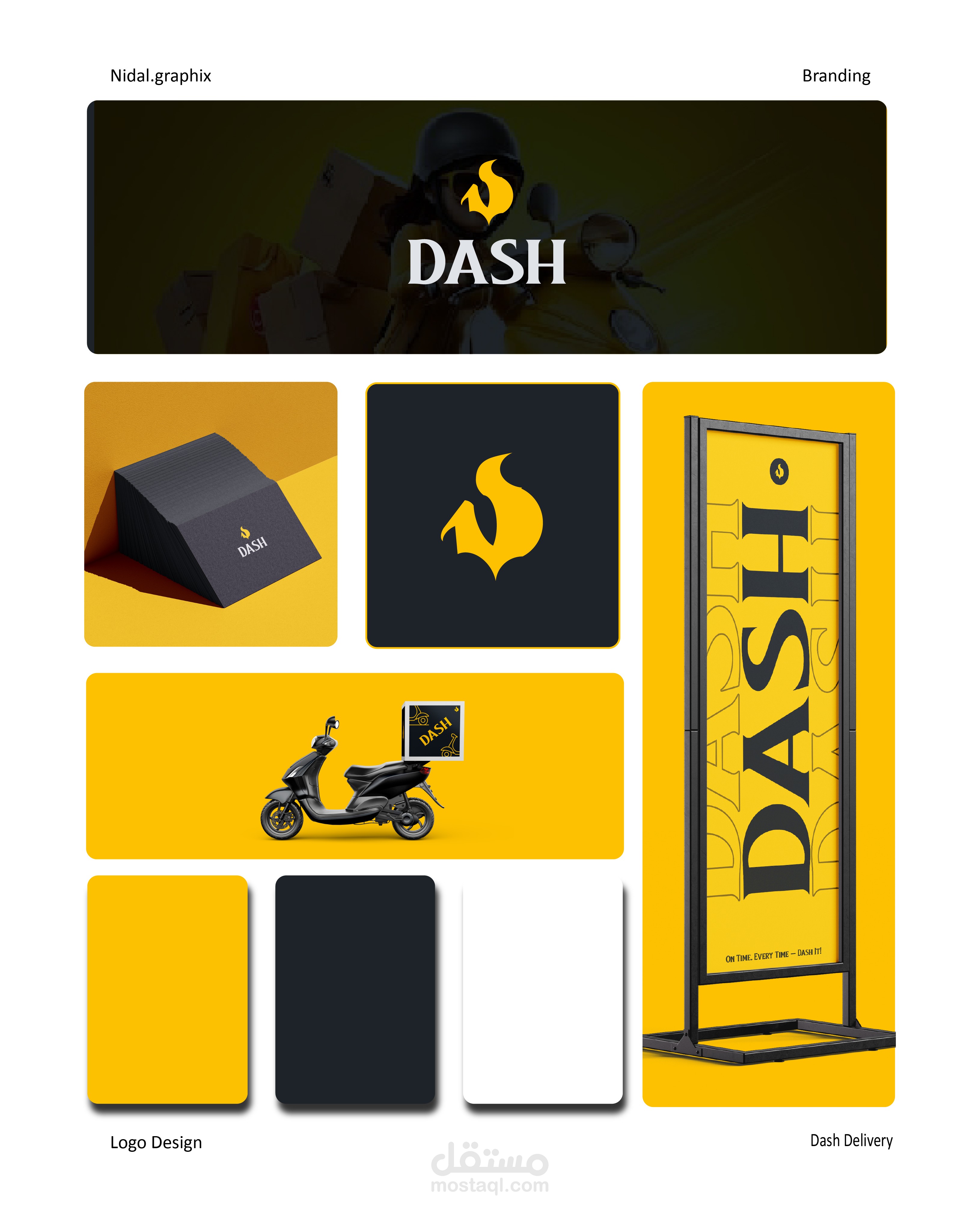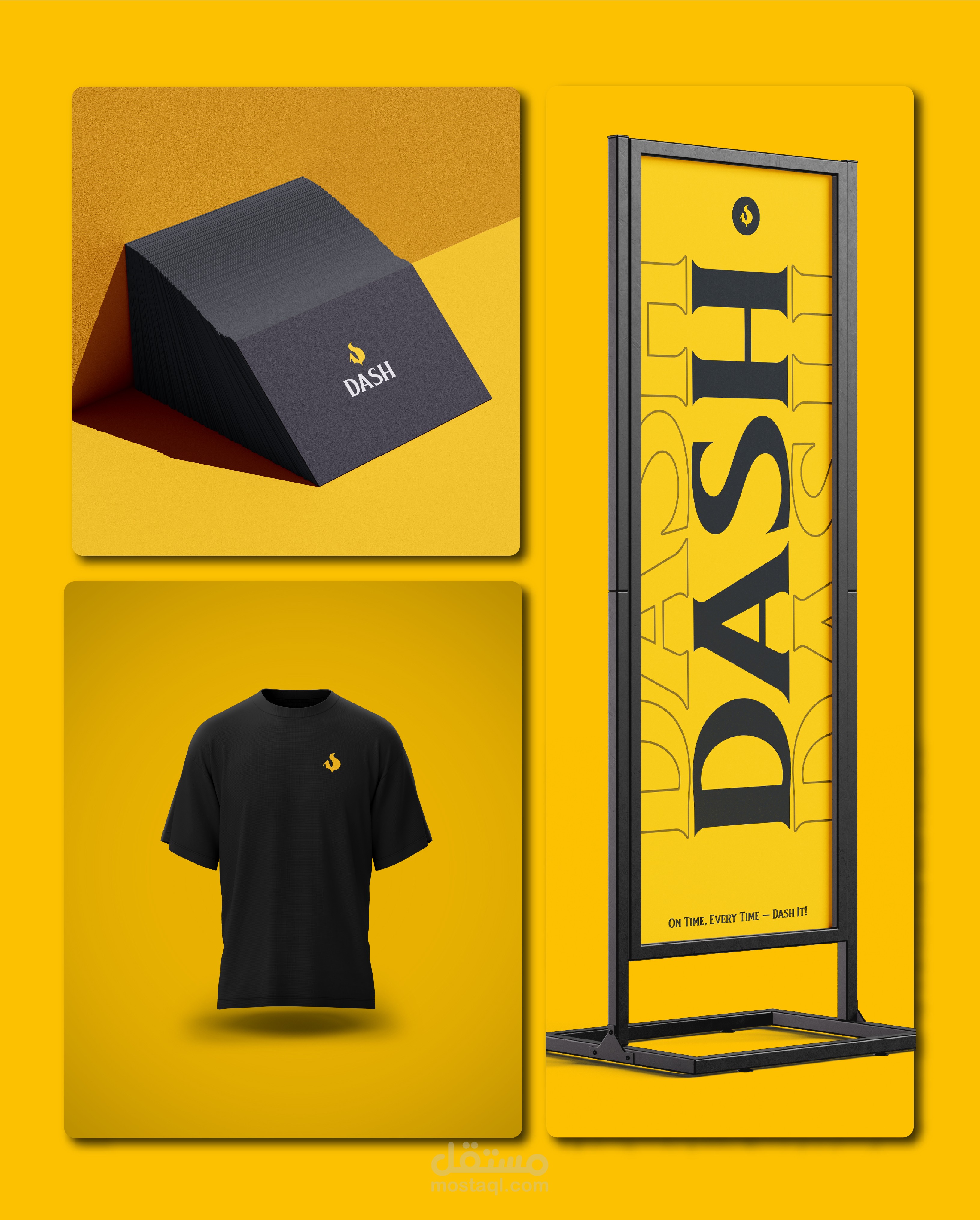 The design is clean, scalable, and versatile—working seamlessly across packaging, signage, vehicle branding, and digital platforms. Altogether, the Dash logo communicates efficiency, reliability, and modern energy in one cohesive identity.