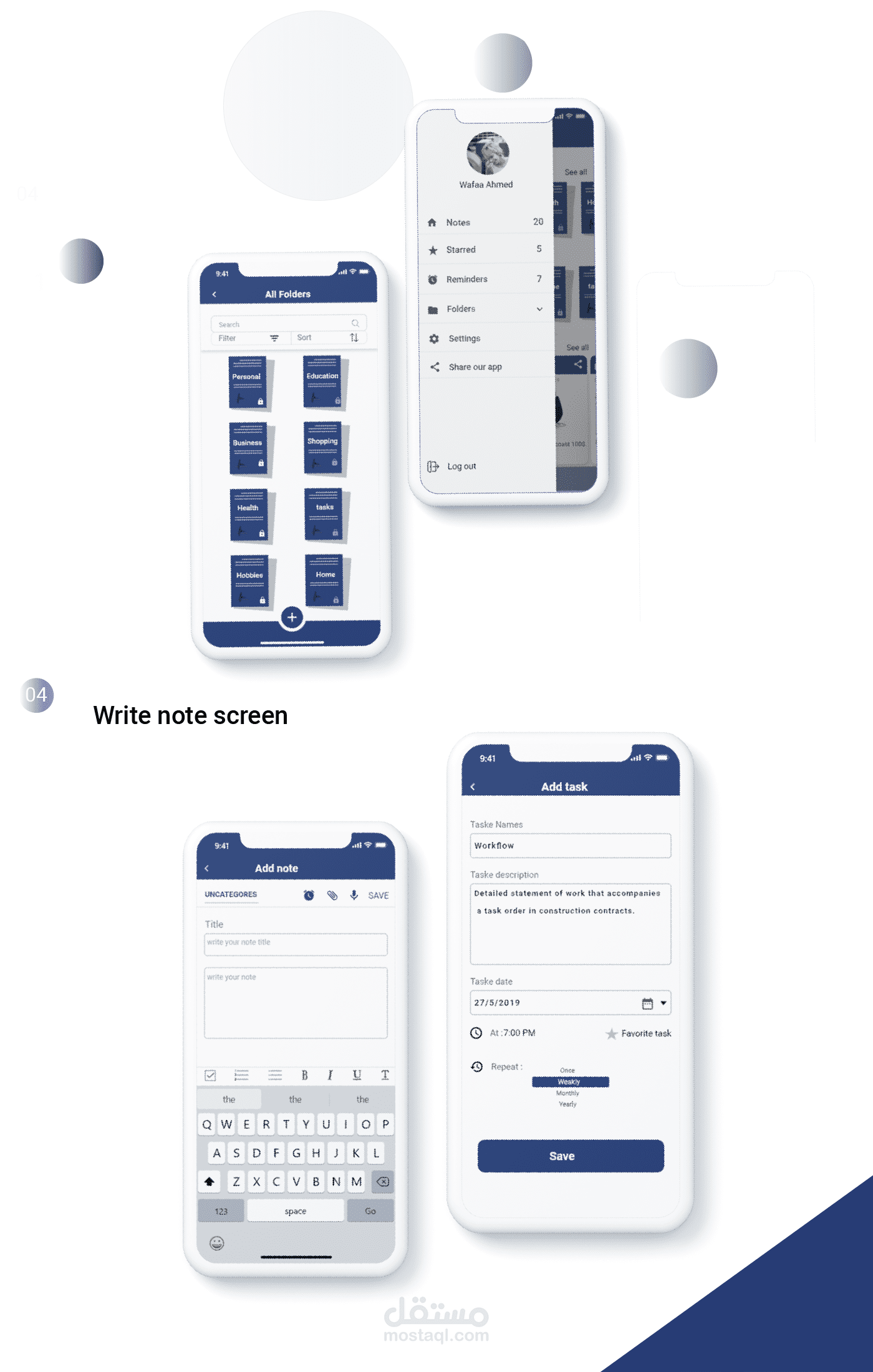 يسمح هذا التطبيق للمستخدم بإضافة نوتة صوتية أو نصية أو مذكرات شخصية أو مهام الانجاز الخاصة به حيث يوفر درجة عالية من الأمان على المعلومات الشخصية ويتيح أيضا تصنيف المدخلات إلى مجلدات خاصة لسهولة العثور عليها و تصفحها عند الحاجة ويسمح بمشاركتها عبر مواقع التواصل الإجتماعي .