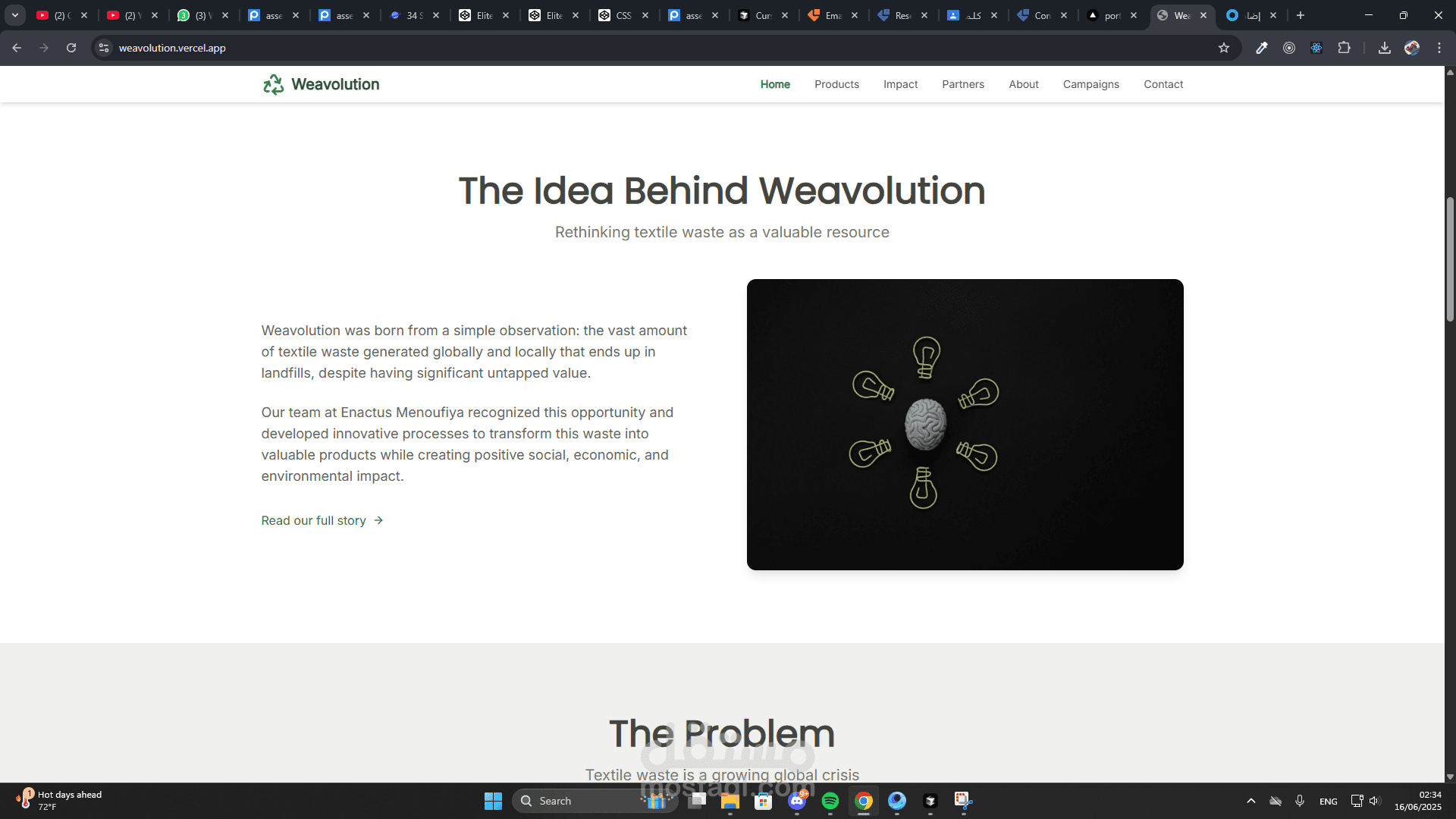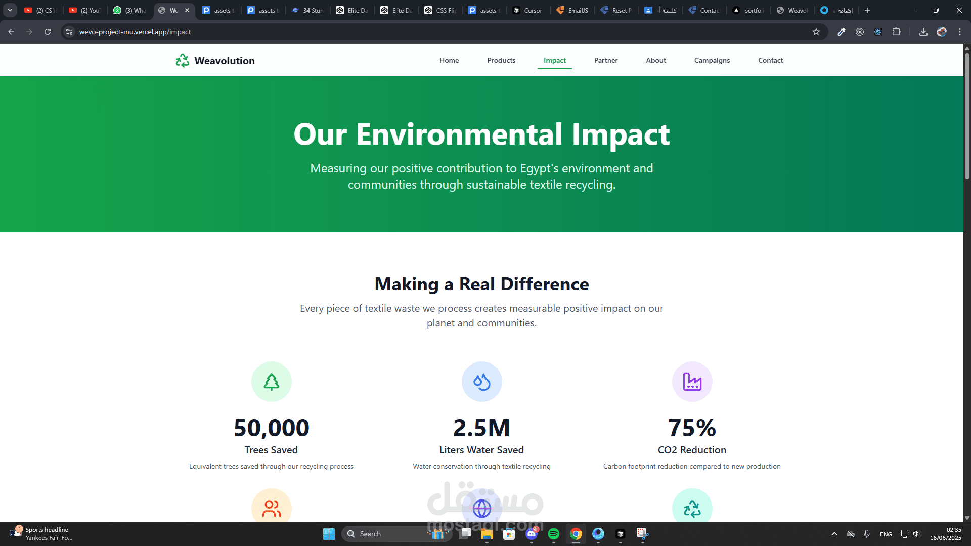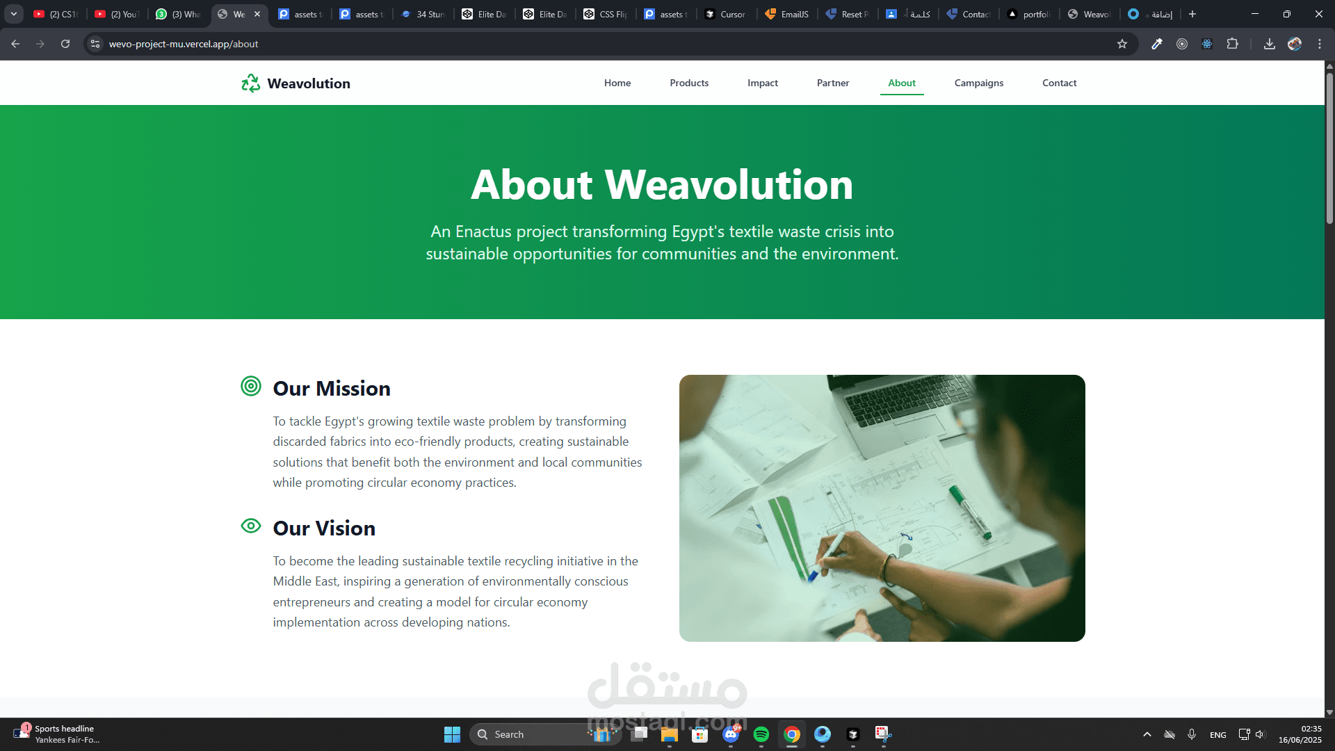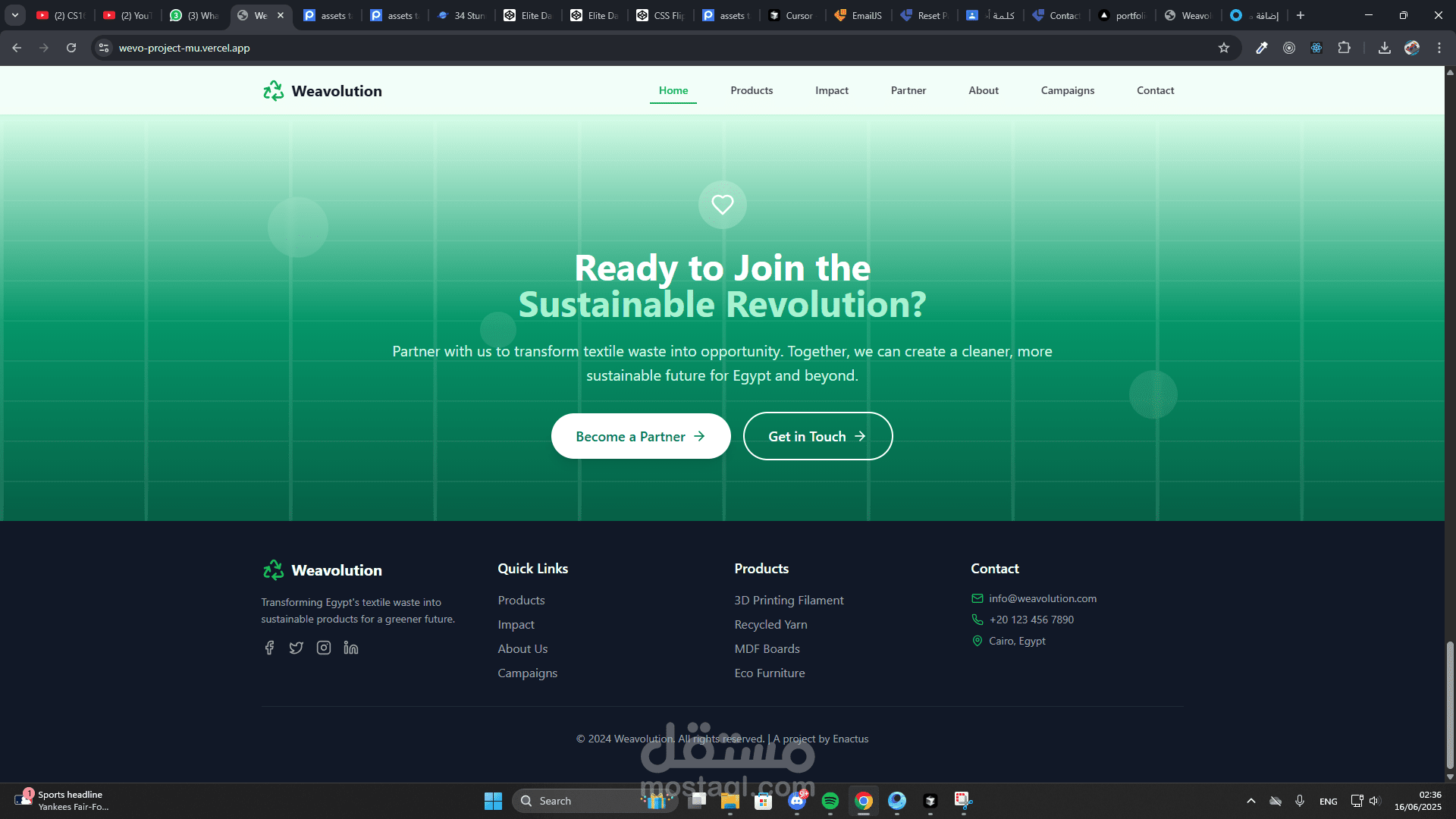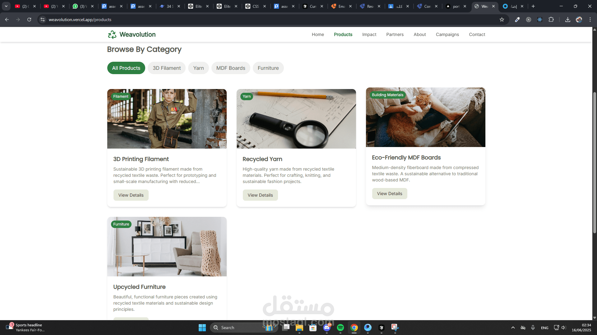 منصة ويب مستدامة تركز على إعادة تدوير نفايات المنسوجات وتحويلها إلى منتجات قيّمة مثل ألواح MDF، والخيوط، وخيوط الطباعة ثلاثية الأبعاد. تم تطويرها بتصميم أنيق وداكن، وتعرض إحصائيات الأثر البيئي، ونماذج للمنتجات الصديقة للبيئة، وتهدف إلى تعزيز الوعي البيئي.