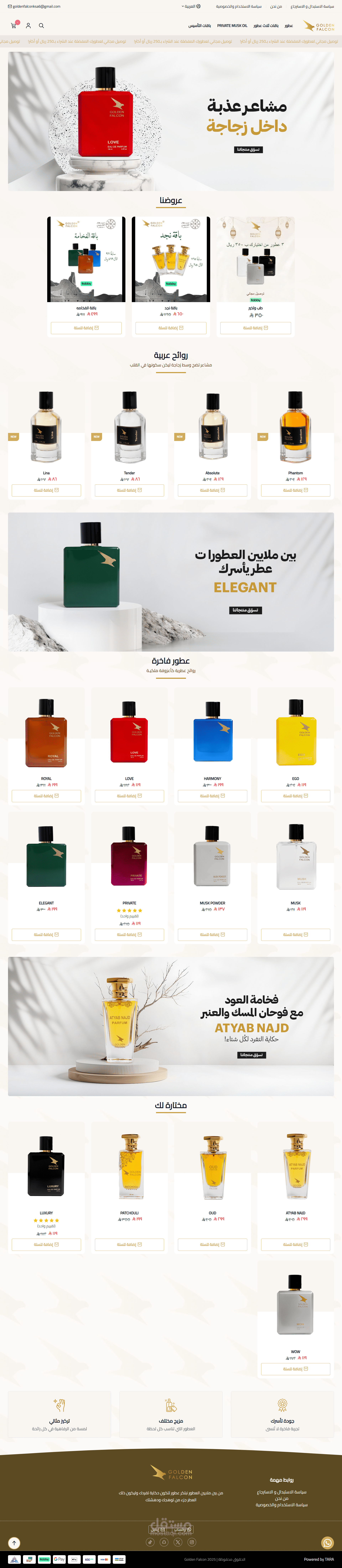 فوتر أنيق يحتوي على بيانات التواصل والأيقونات الاجتماعية والدفع.