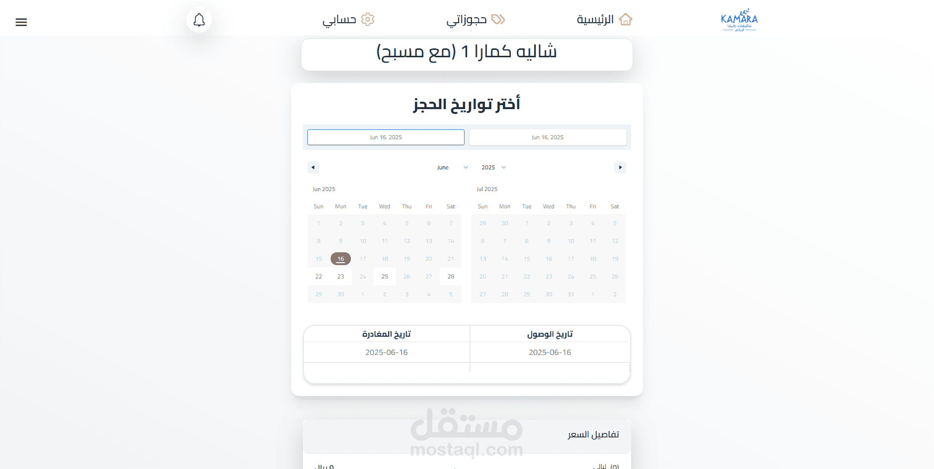 وتم توفير داشبورد للعميل بها كل ادوات التحكم و احصائيات الحجوزات كامله