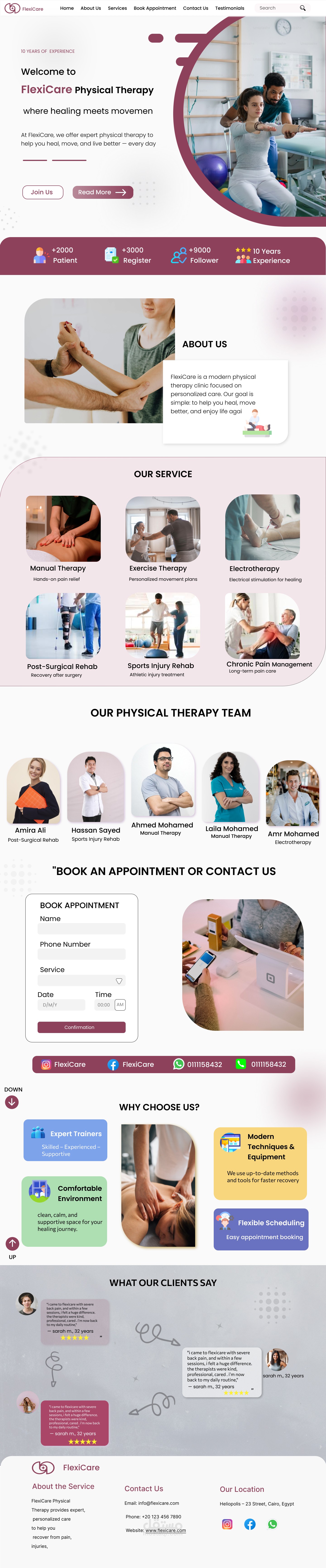 قمت بتصميم واجهة مستخدم UI/UX لموقع FlexiCare، وهو مركز متخصص في العلاج الطبيعي، يهدف لتقديم تجربة علاجية حديثة ومريحة.