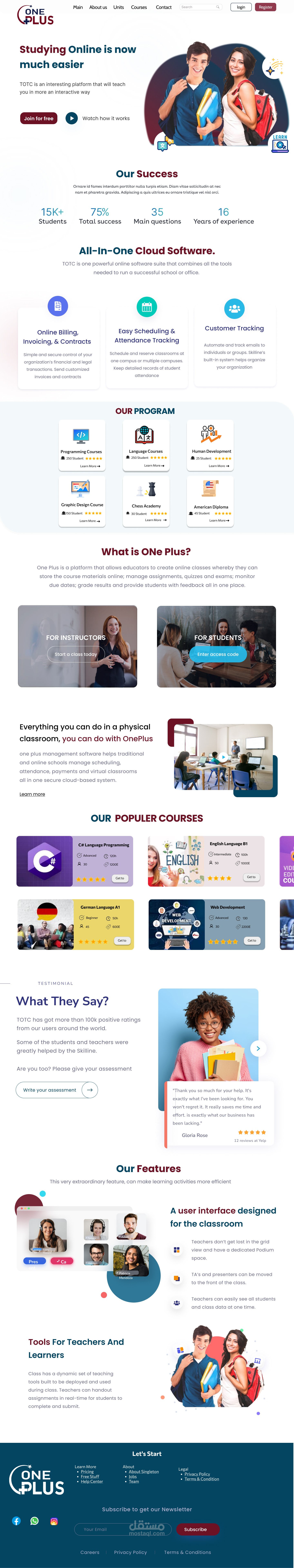 تم تصميم واجهة مستخدم لموقع مؤسسة تعليمية تهدف إلى تقديم برامج تدريبية ودورات متخصصة للطلاب والمهتمين بتطوير المهارات الأكاديمية والمهنية. يعرض الموقع المحتوى بشكل منظم وسلس ليُسهل على الزوار استكشاف الخدمات والبرامج التعليمية بسهولة.