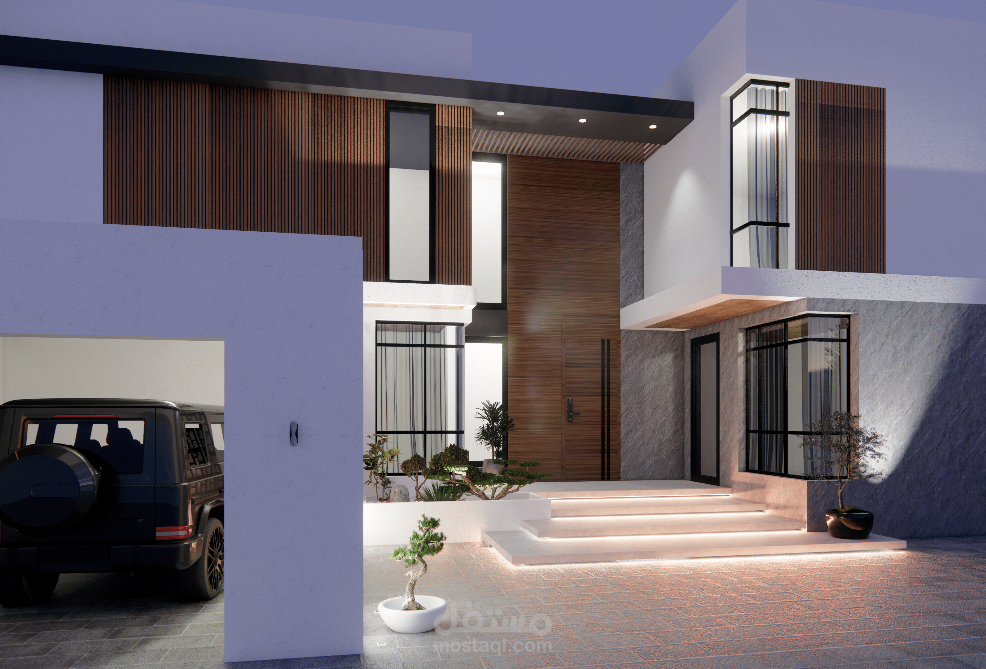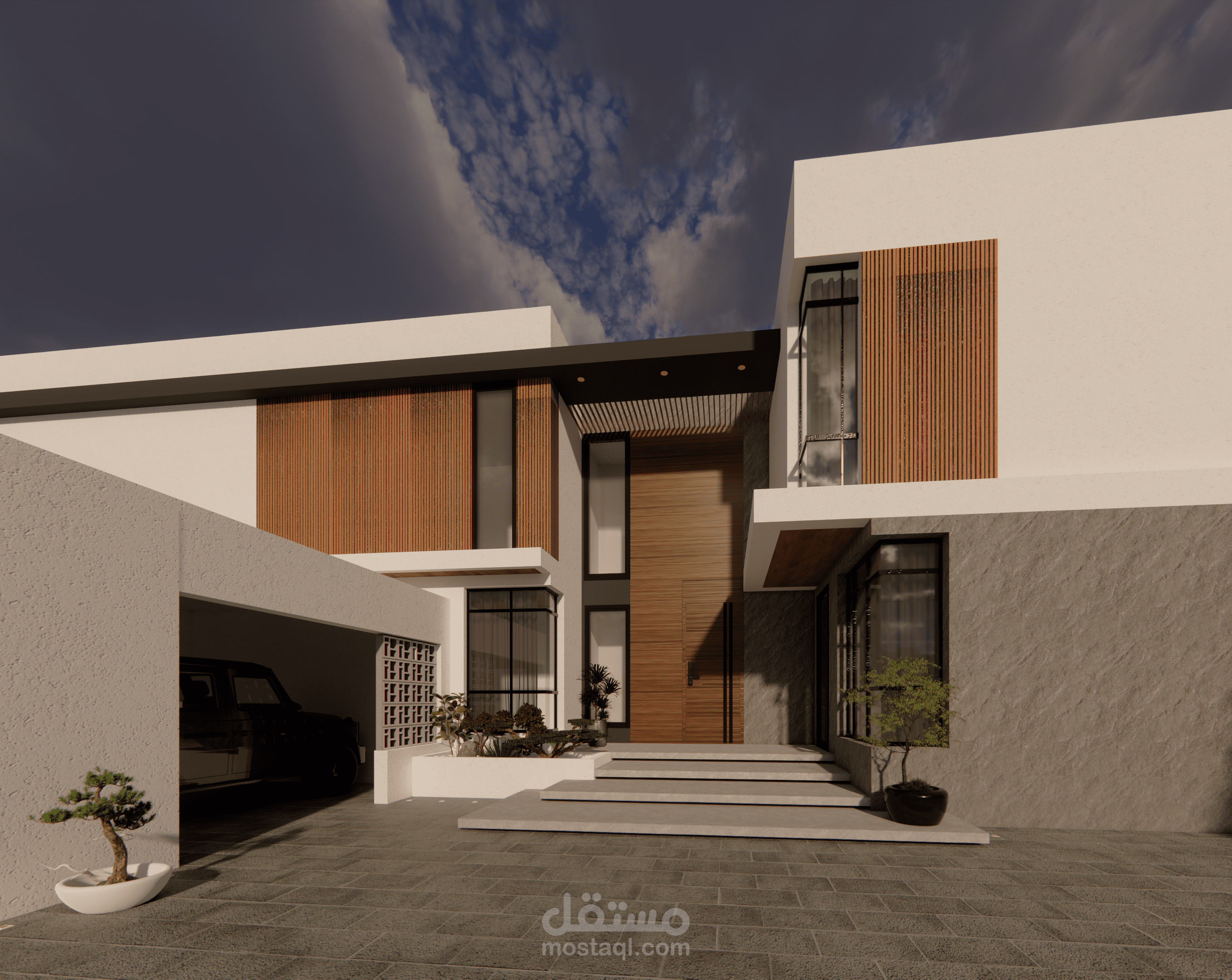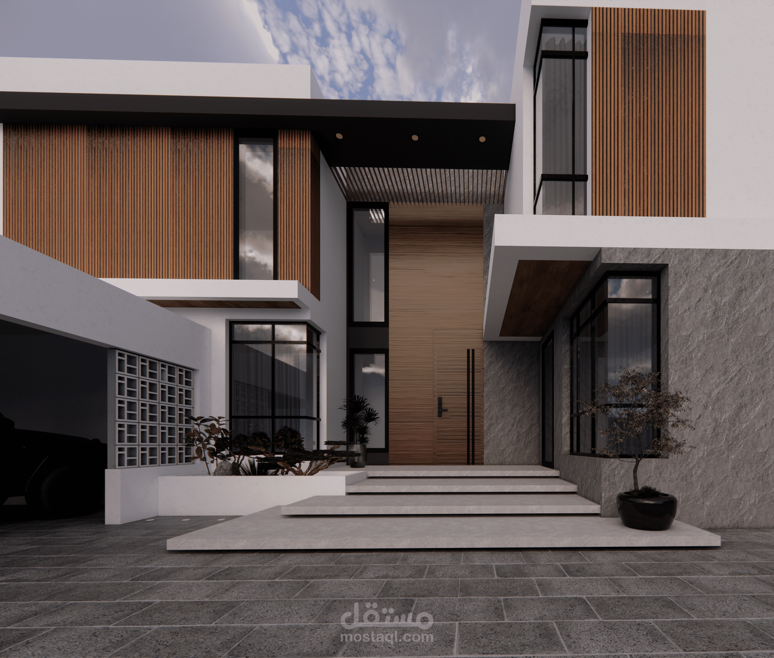 تشجير جانبي بتصميم عصري وجذاب يعزز من جمالية المدخل.