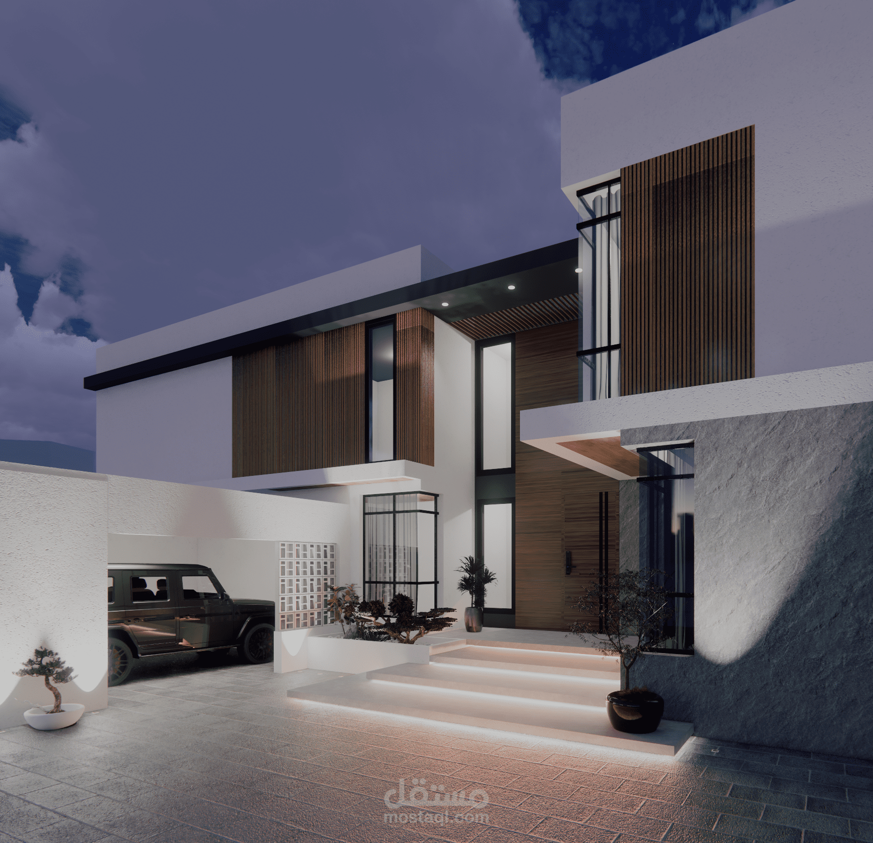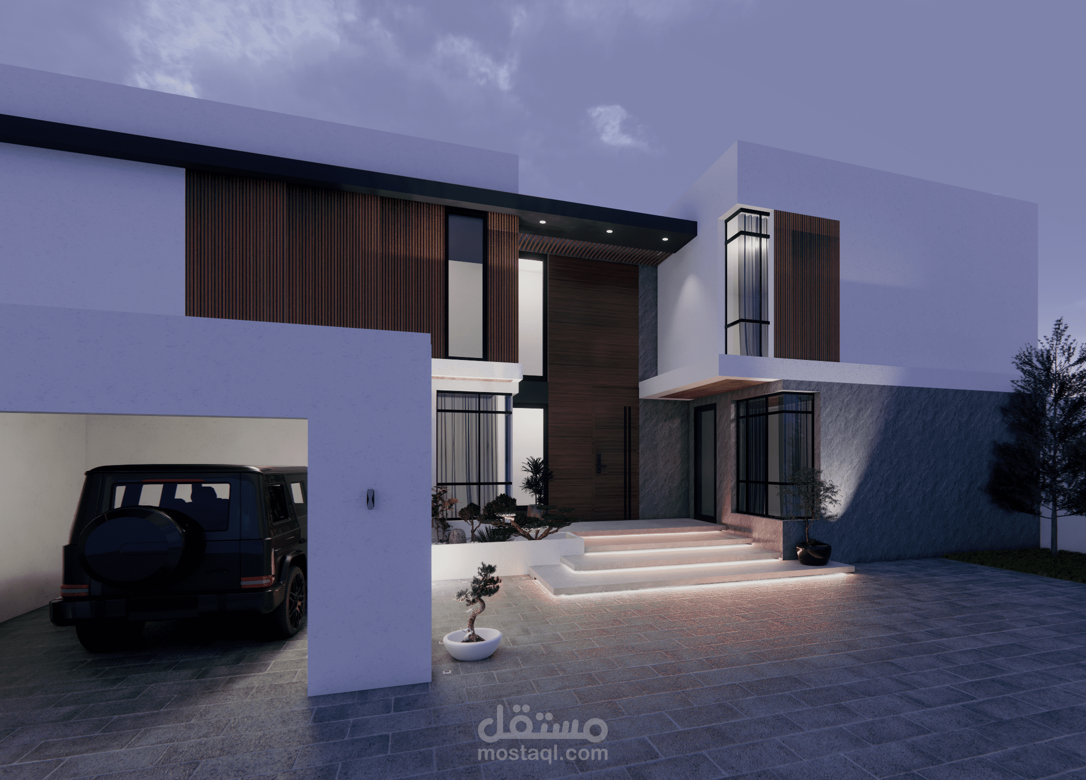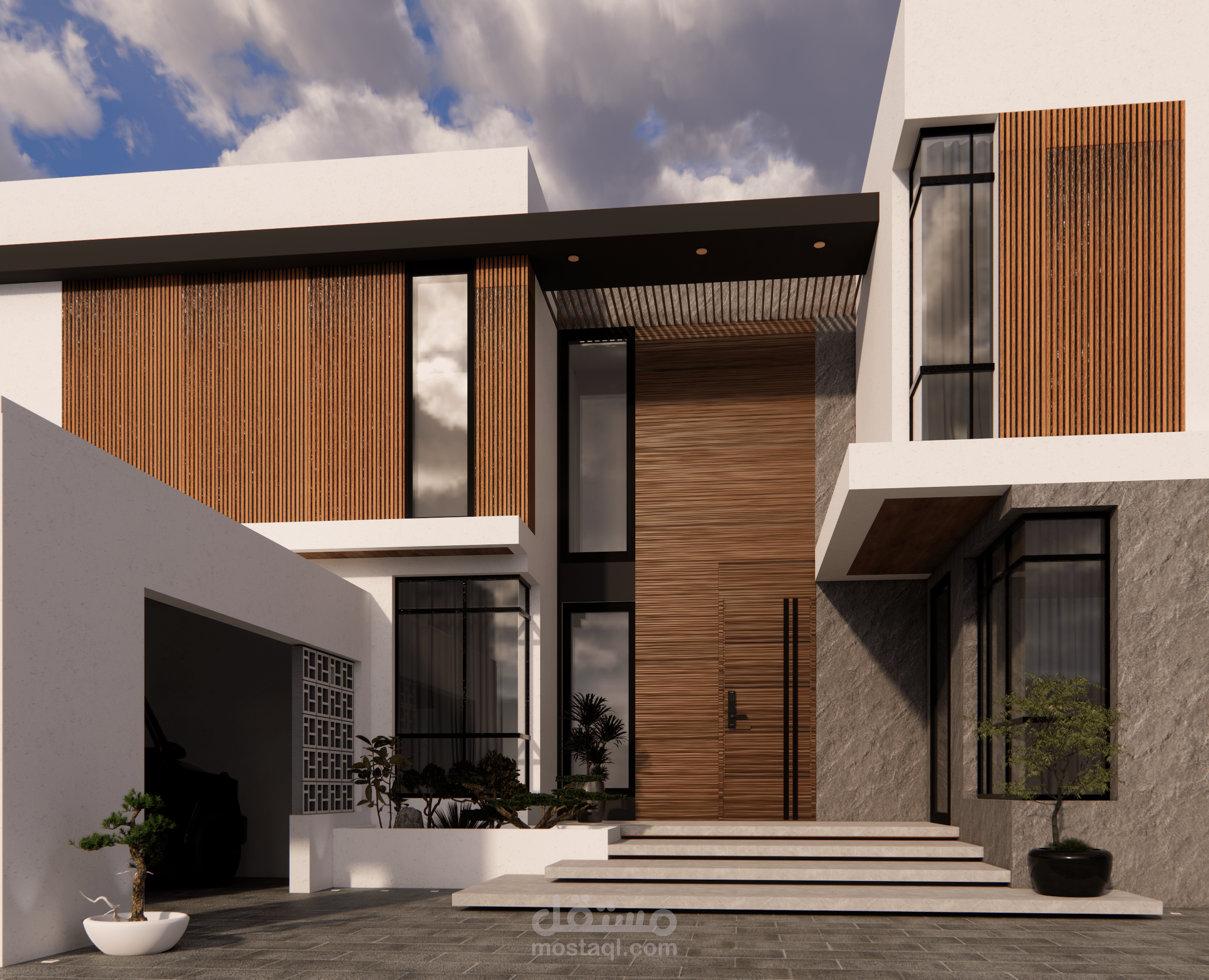 تشجير جانبي بتصميم عصري وجذاب يعزز من جمالية المدخل.