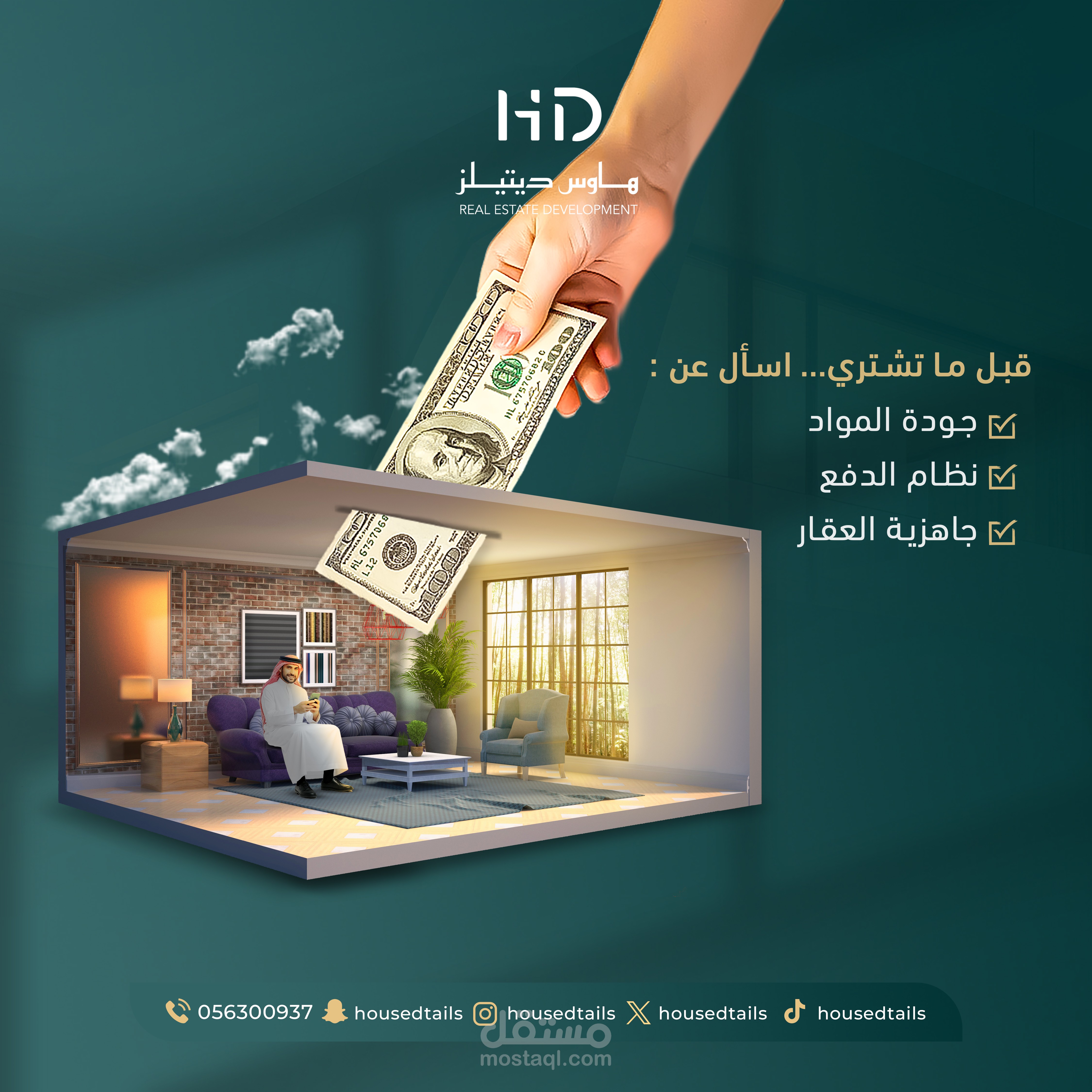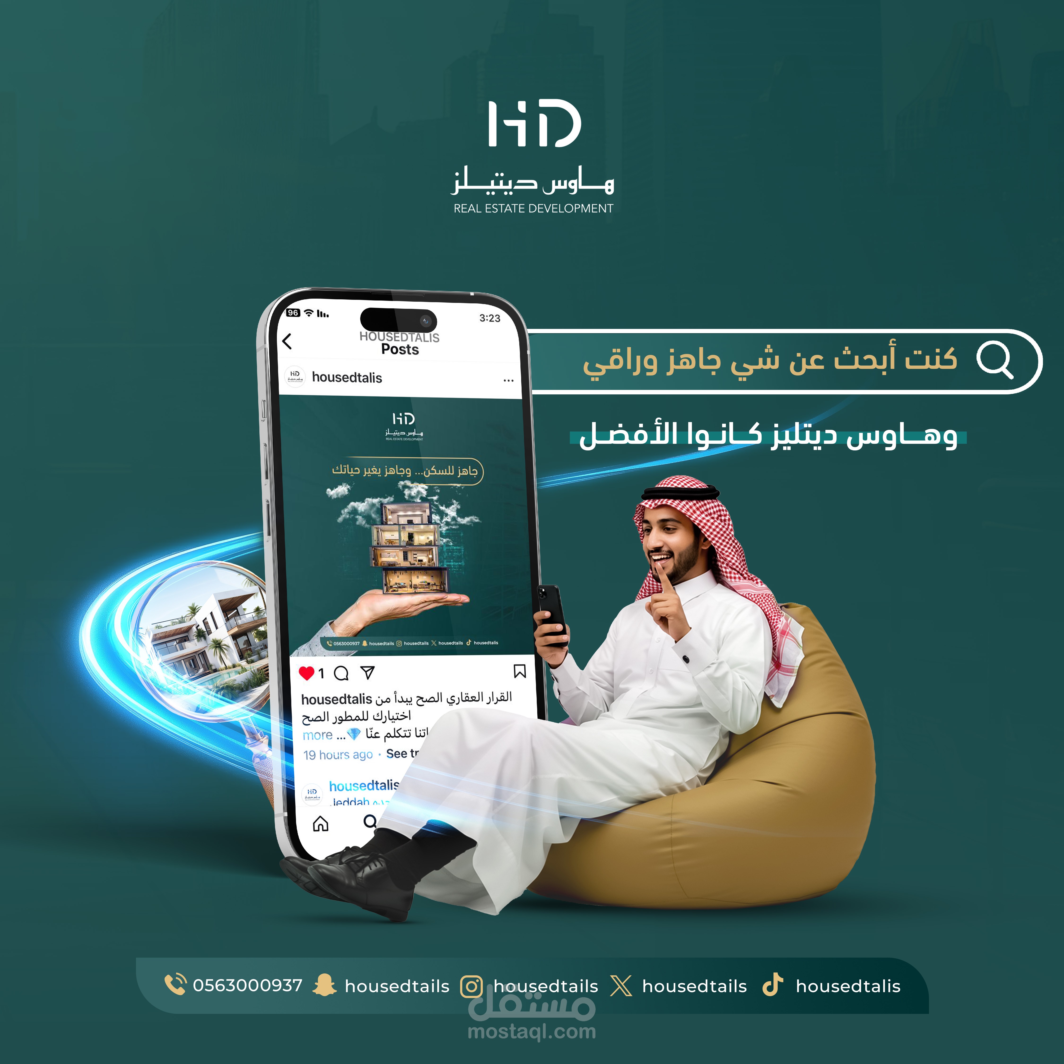 تصميم بوستات سوشال ميديا لشركة عقارات سعودية