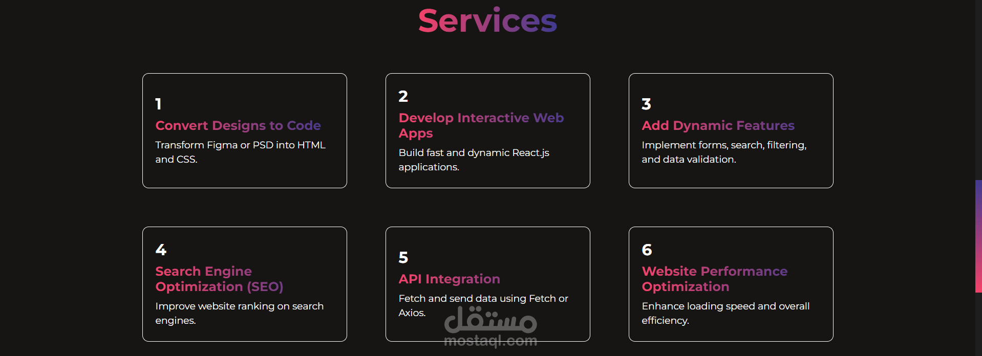 4- فقرة تعريفية مختصرة توضح المجال الدقيق: تطوير واجهات مستخدم تفاعلية وسهلة الاستخدام.