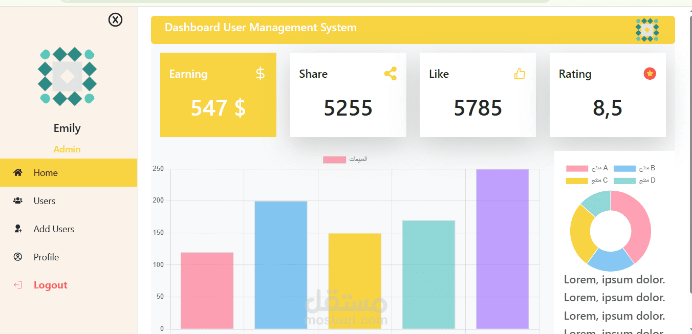 لوحة تحكم احترافية لإدارة المستخدمين، تم تطويرها باستخدام React.js مع TypeScript وTailwind CSS لواجهة عصرية وسريعة الاستجابة.
