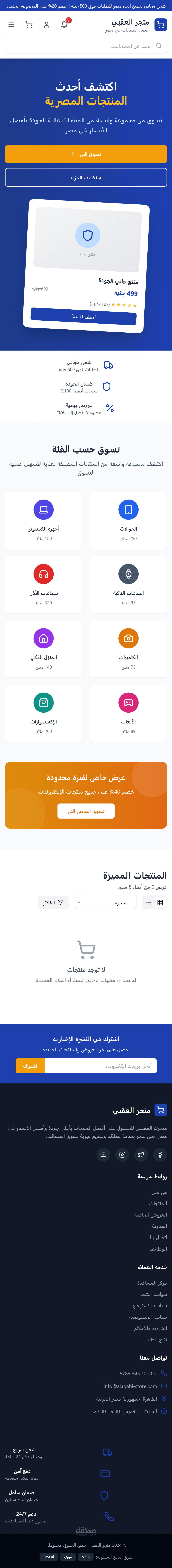 متجر إلكتروني احترافي يتيح تجربة تسوق سهلة وسلسة، مع واجهة جذابة تدعم اللغة العربية ومناسبة للأجهزة الذكية.